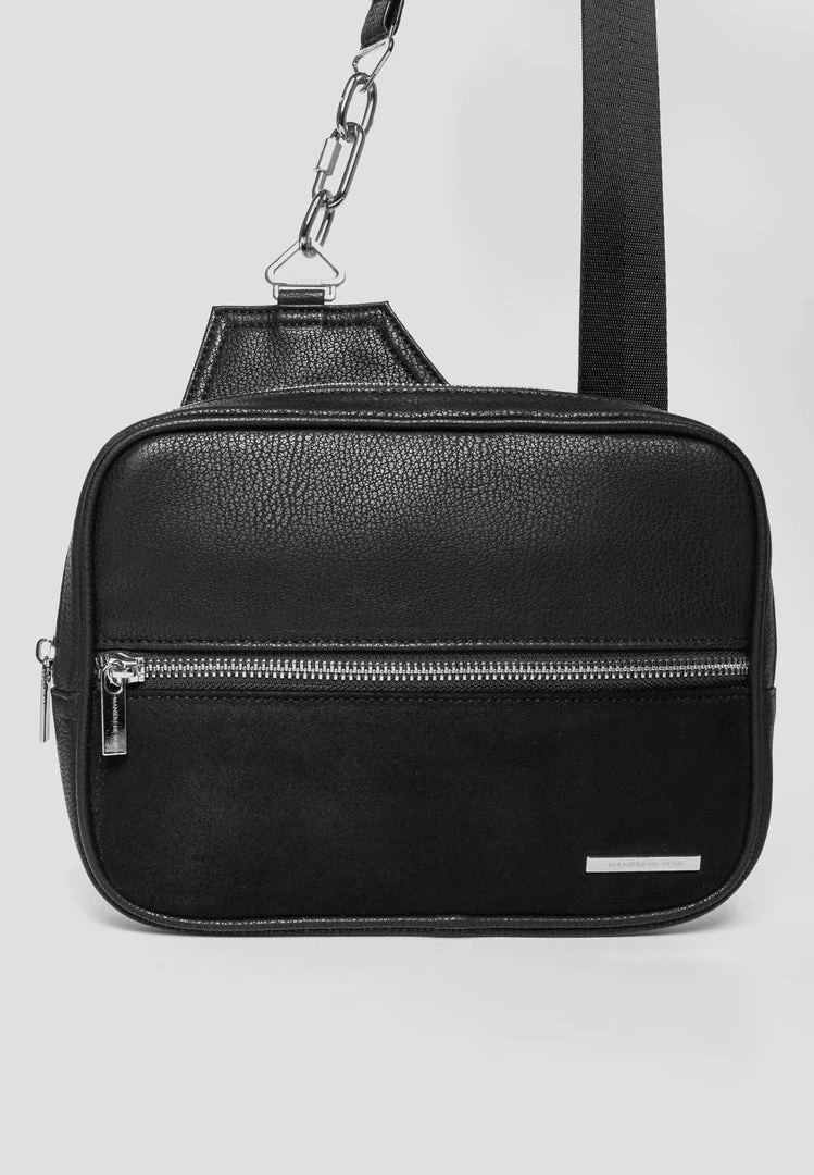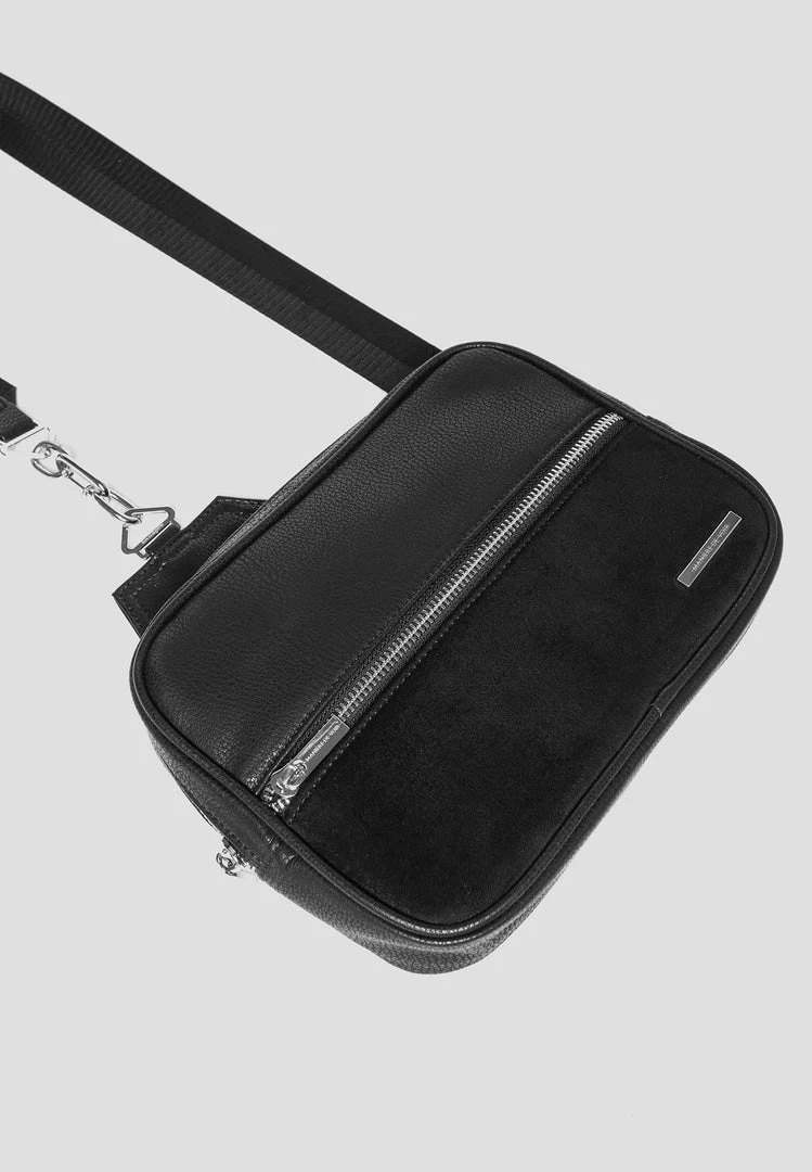 Faux Grained Leather Crossbody Bag with Faux Suede Panel