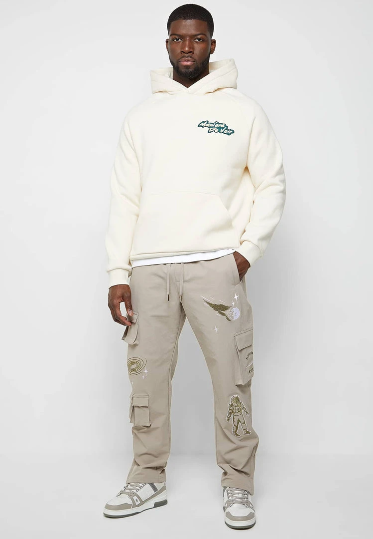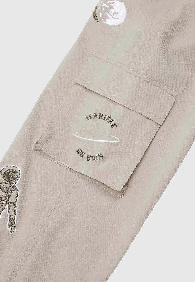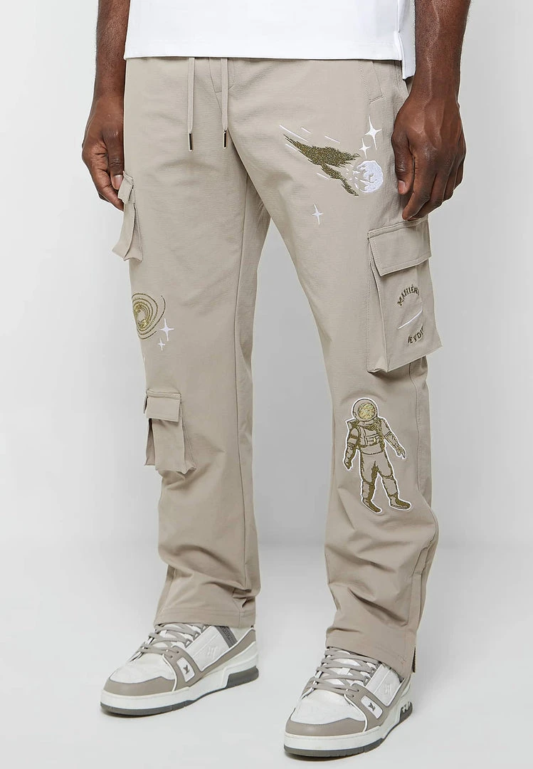 Taupe Cargo Pant with Astronaut Embroidery Graphic