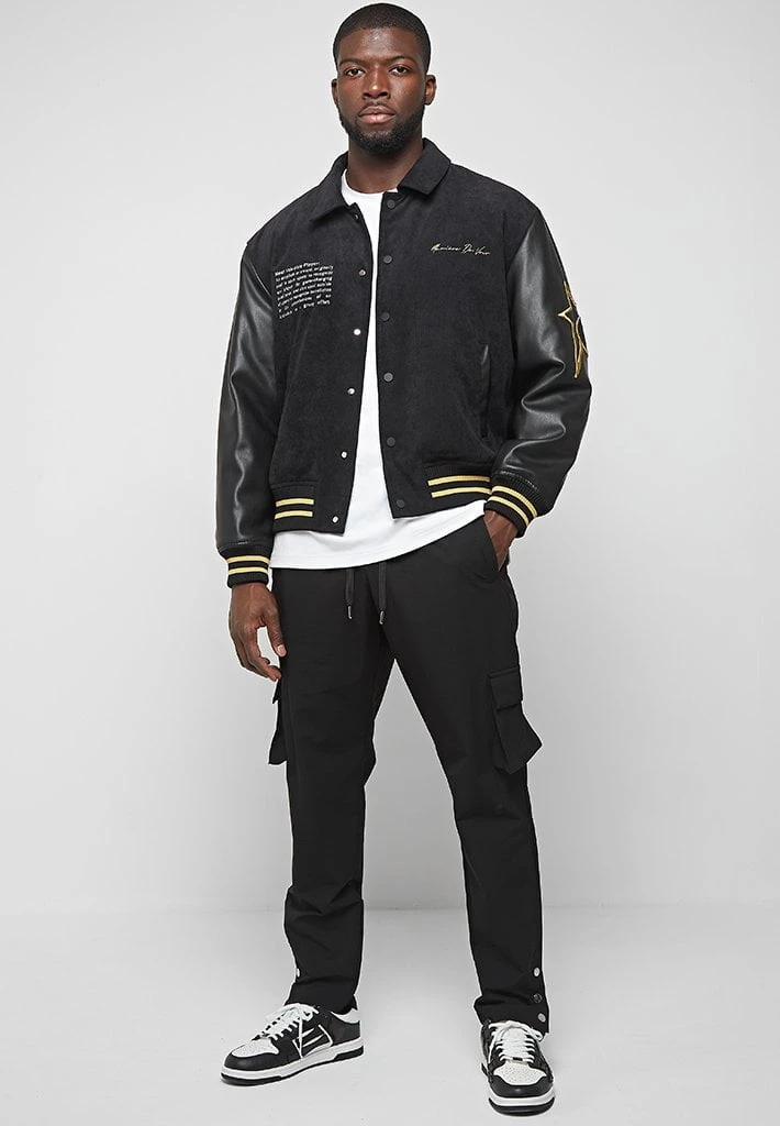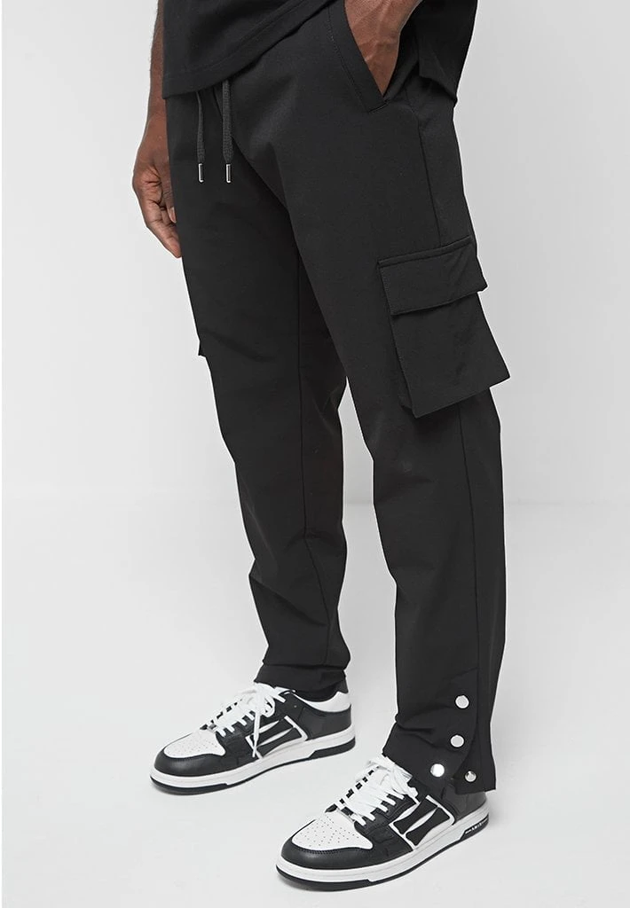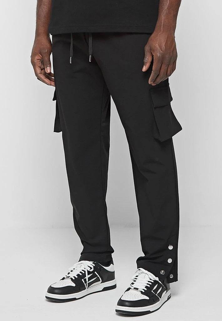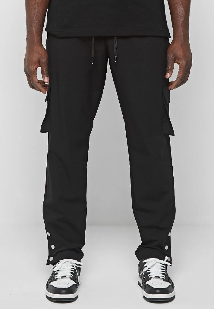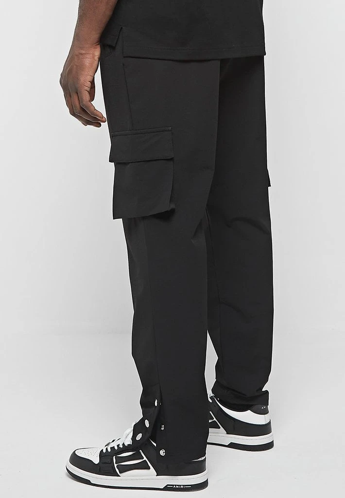 Loose Fit Technical Cargo Pants in Black with Popper Snap Detail