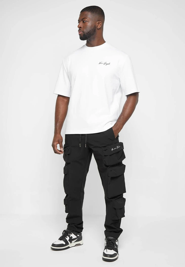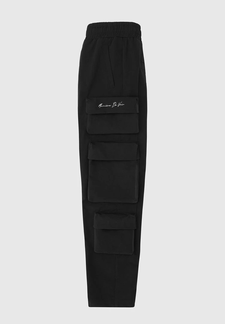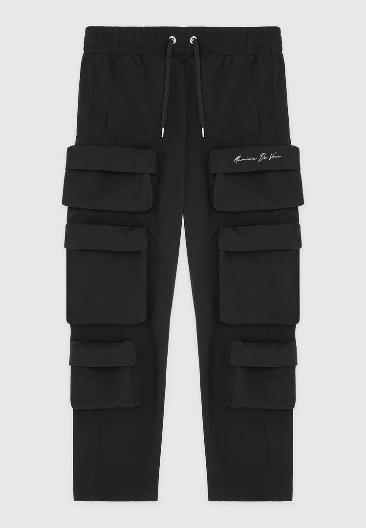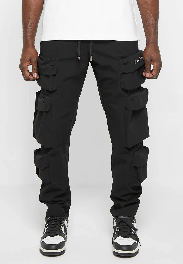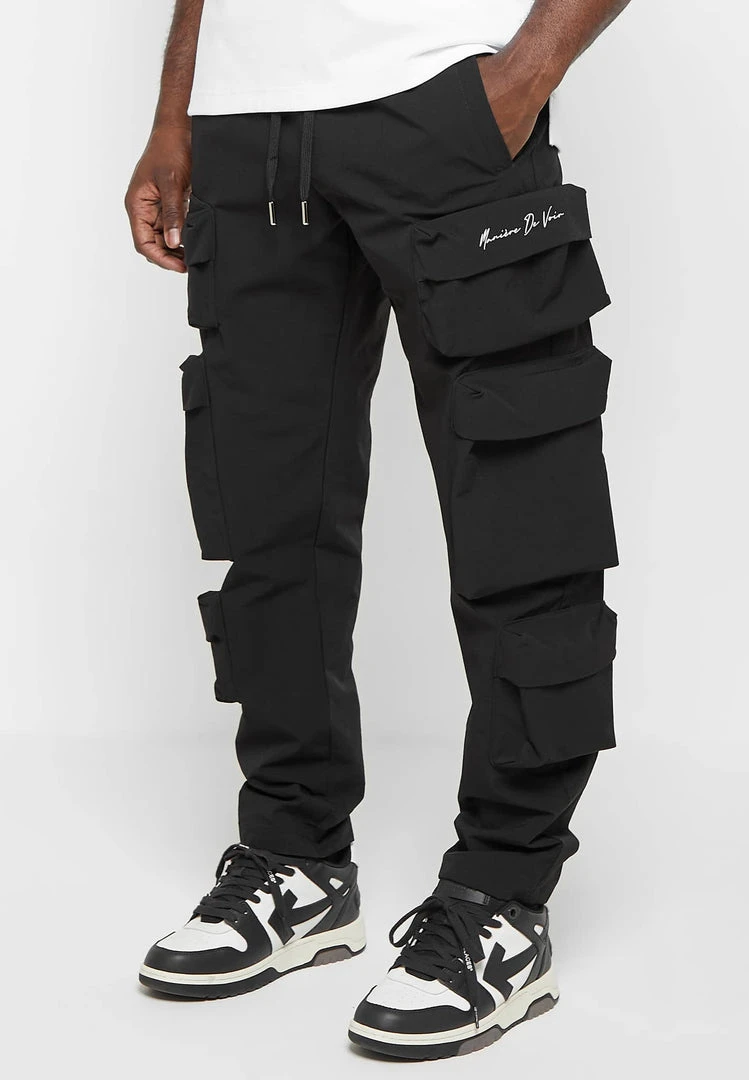 Man Casual Trousers Multi Pocket Cargo Pants – Black