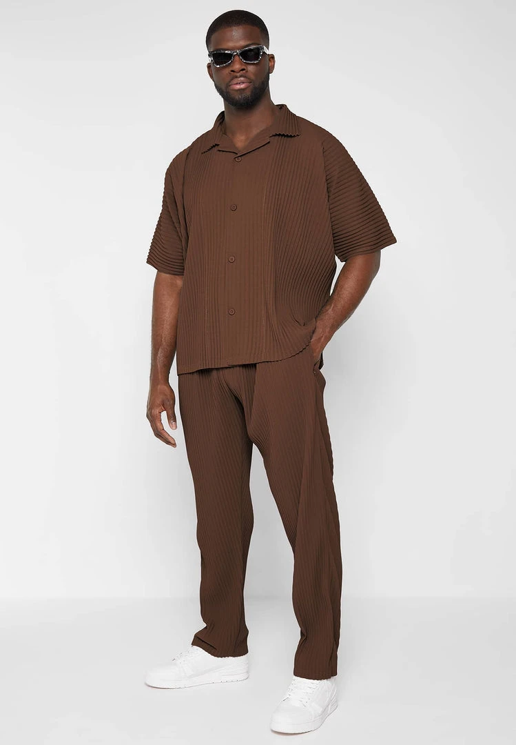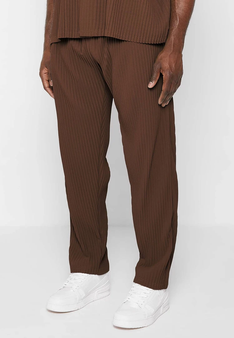 Man Casual Trousers Pleated Trousers – Brown