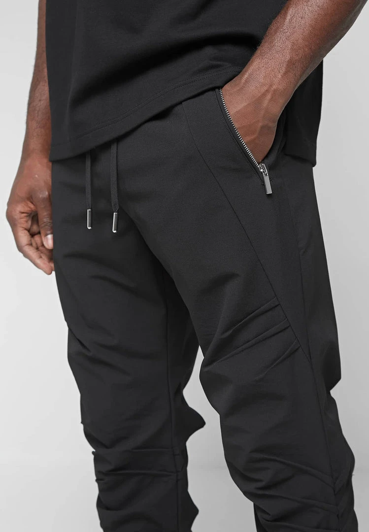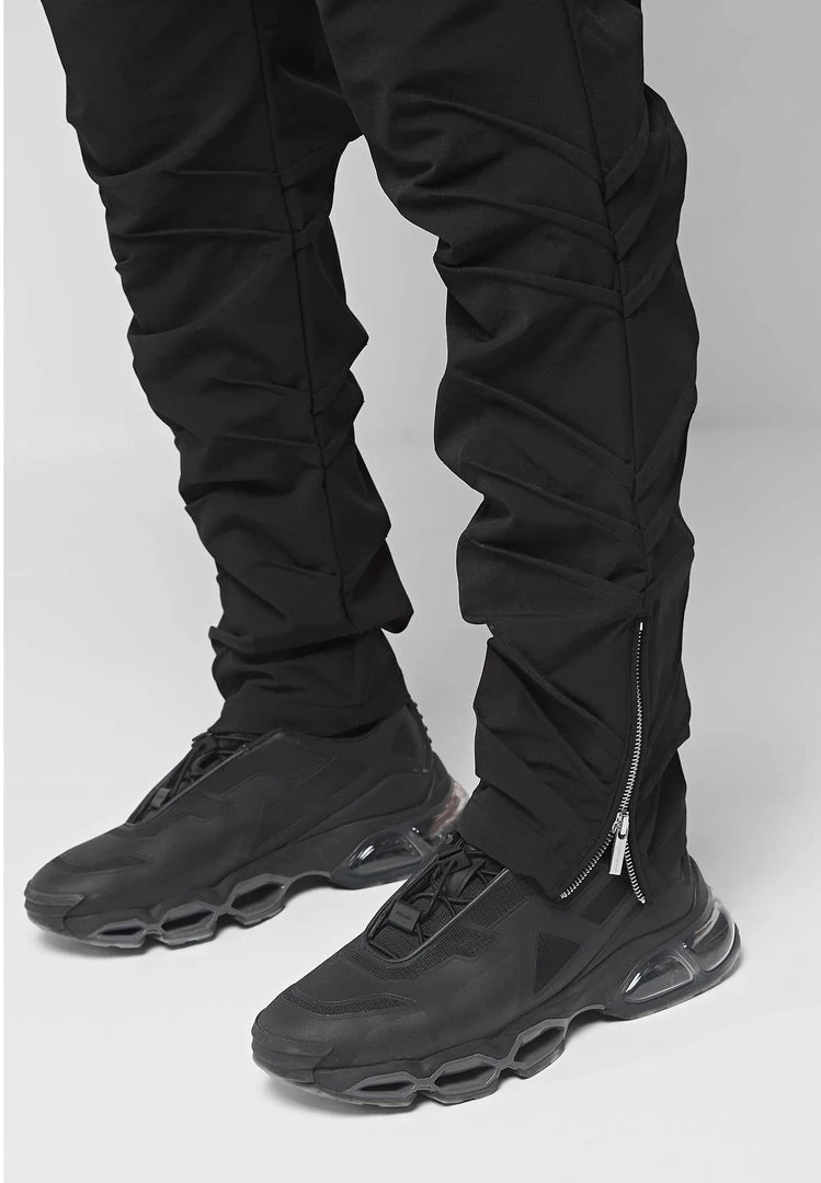 Black Cargo Pants with a Ruched Effect Detail
