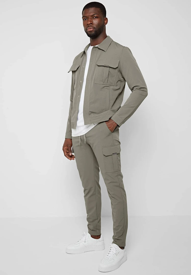 Man Casual Trousers Technical Cargo Pants – Olive Green