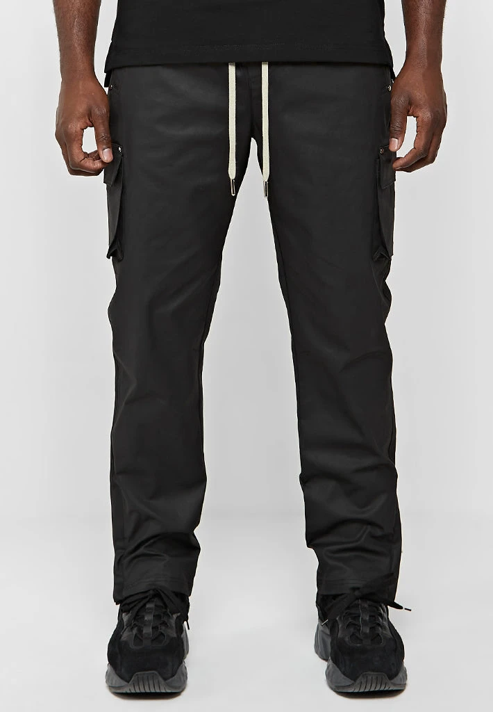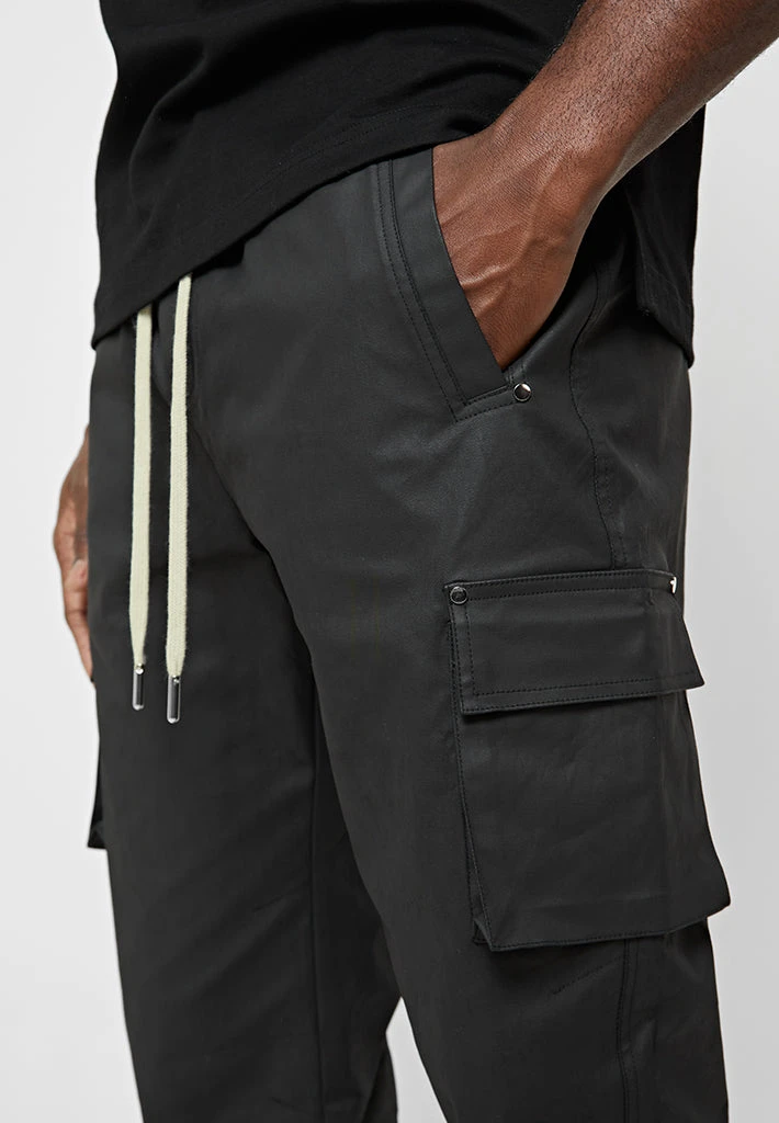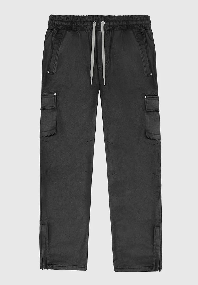 Waxed Cotton Loose Fit Cargo Pants with Contrast Drawcord