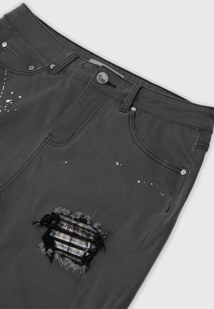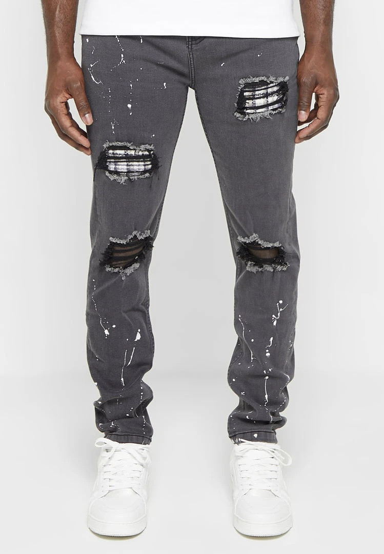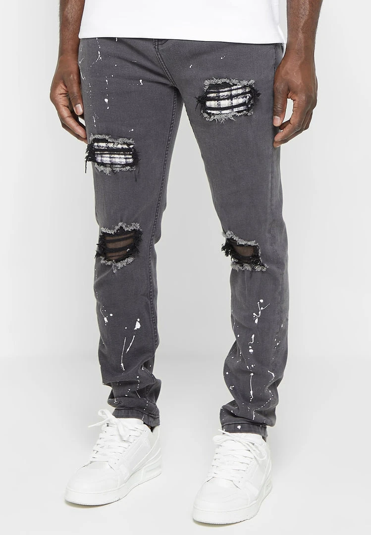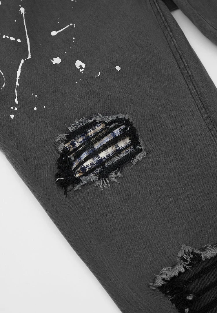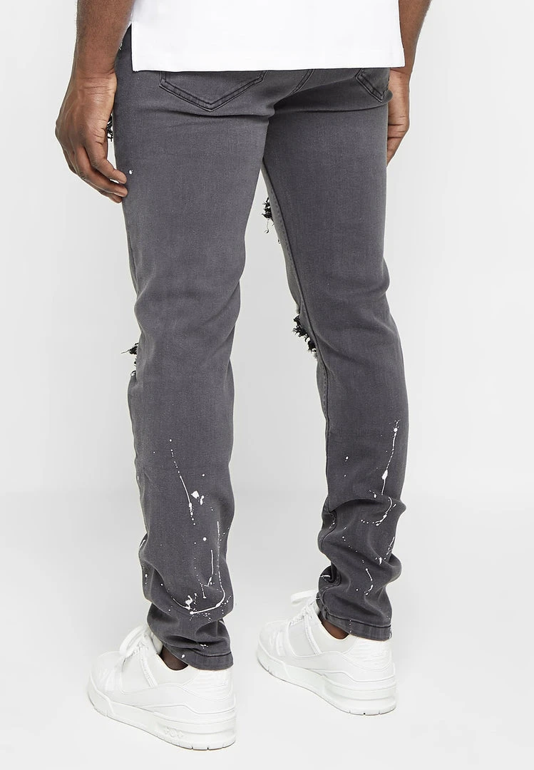 Man Denim Paint Splatter Jeans – Stonewash Grey