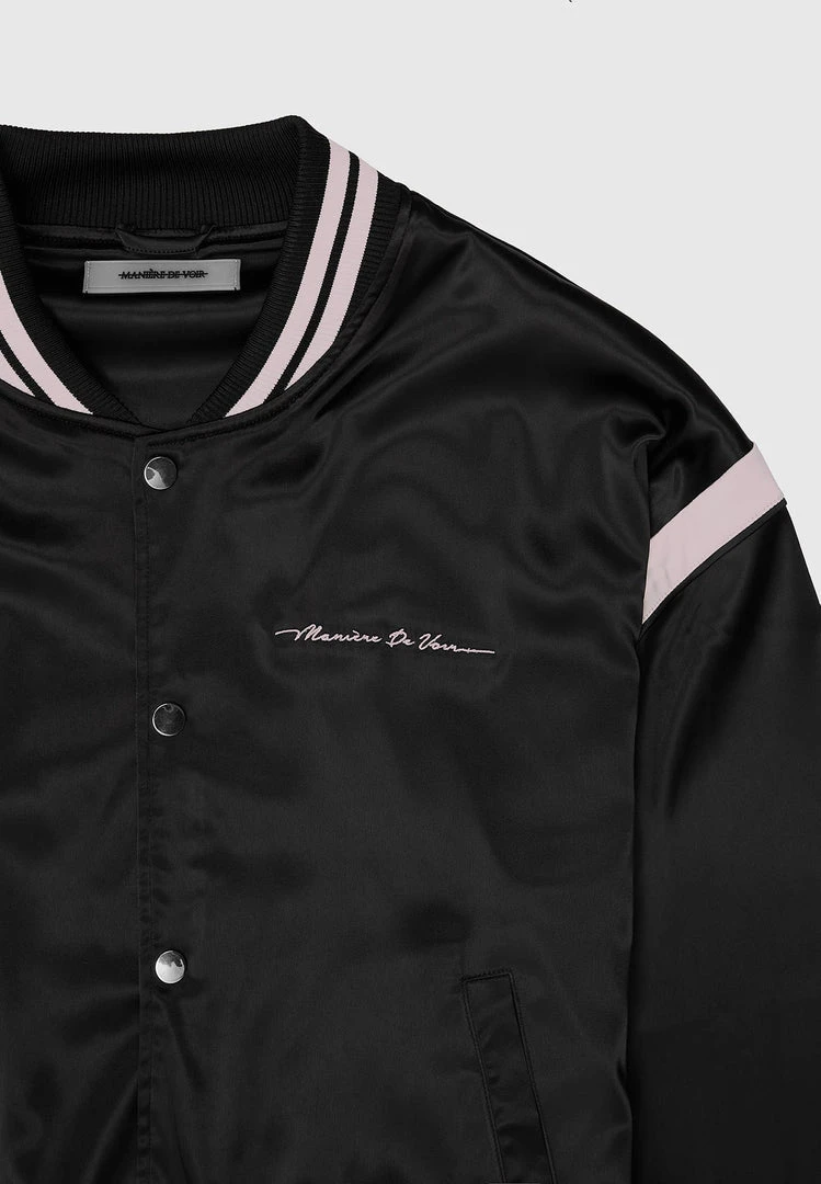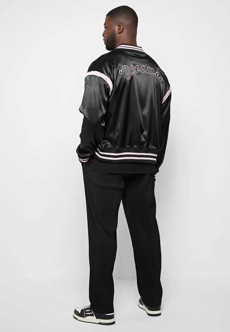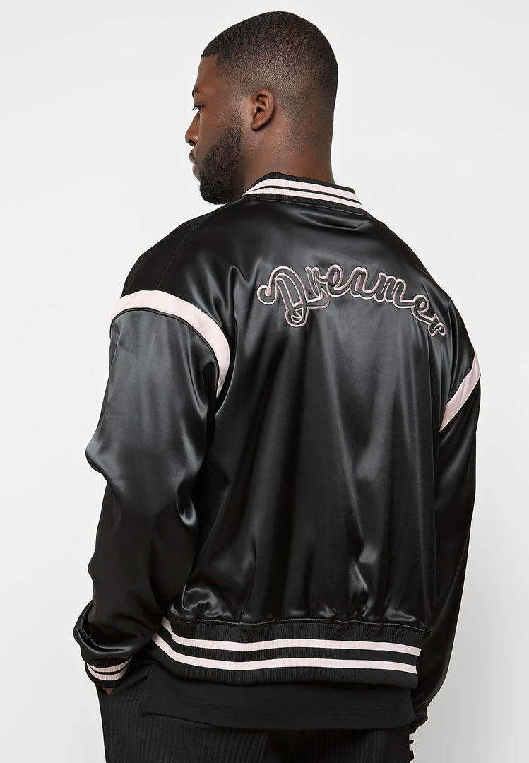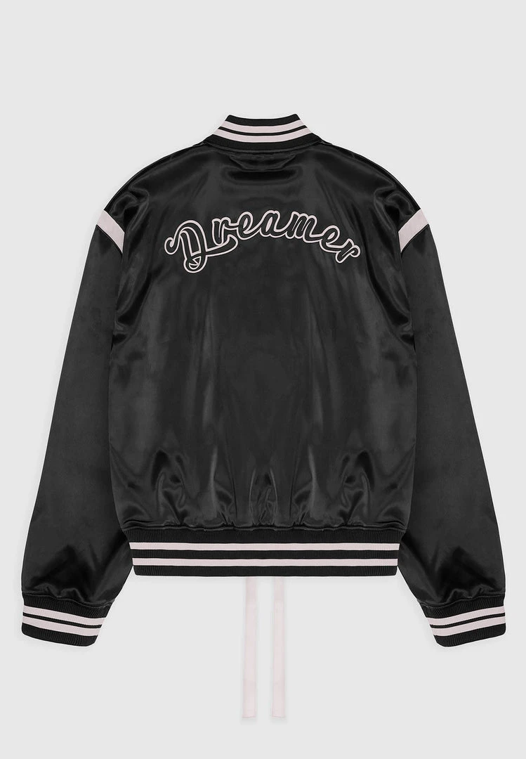 Satin Varsity Jacket with Embroidery Dreamer Slogan