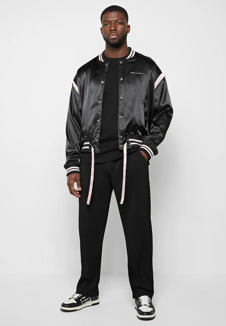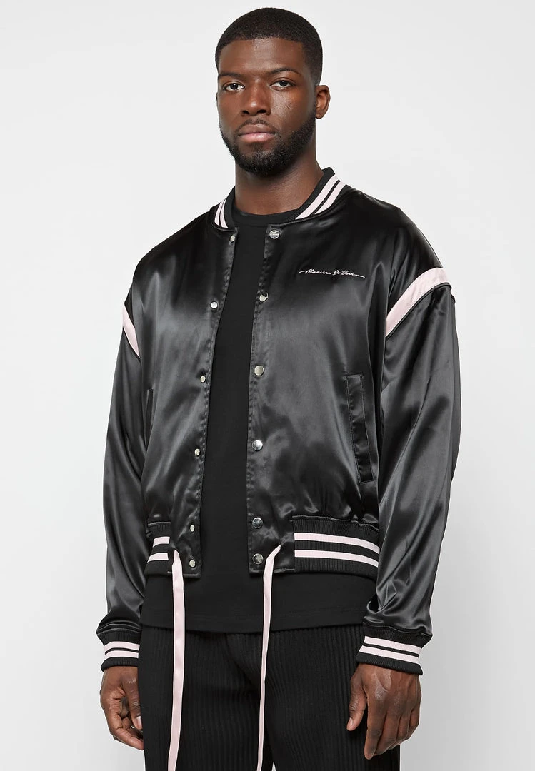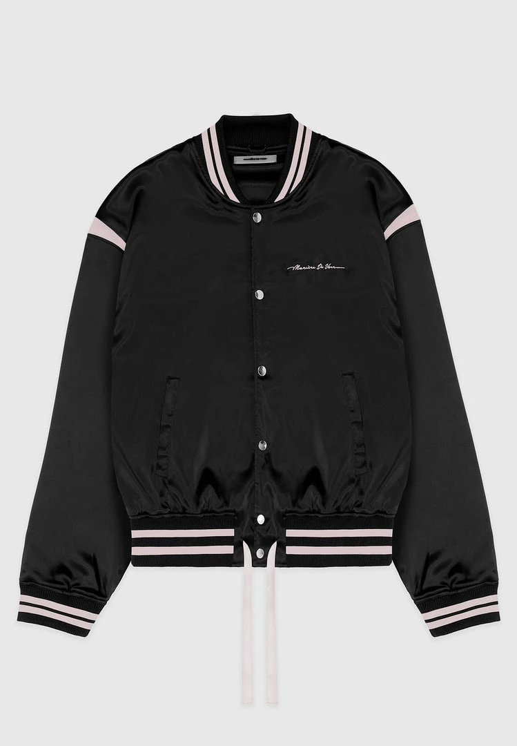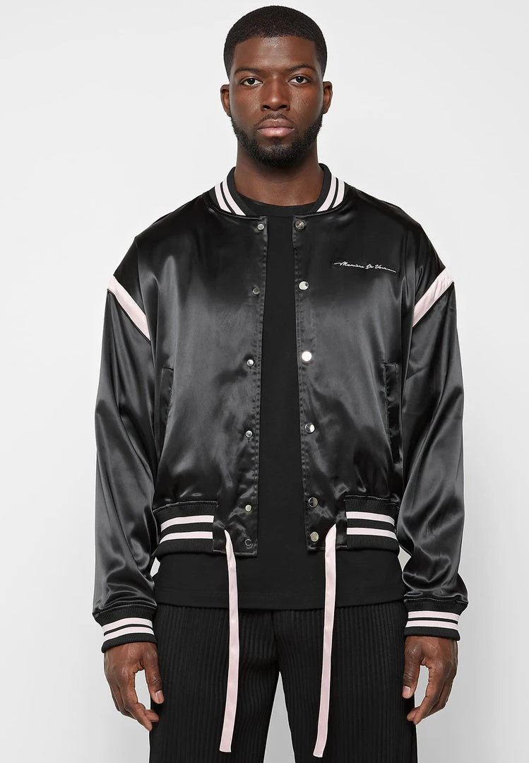 Satin Varsity Jacket with Embroidery Dreamer Slogan
