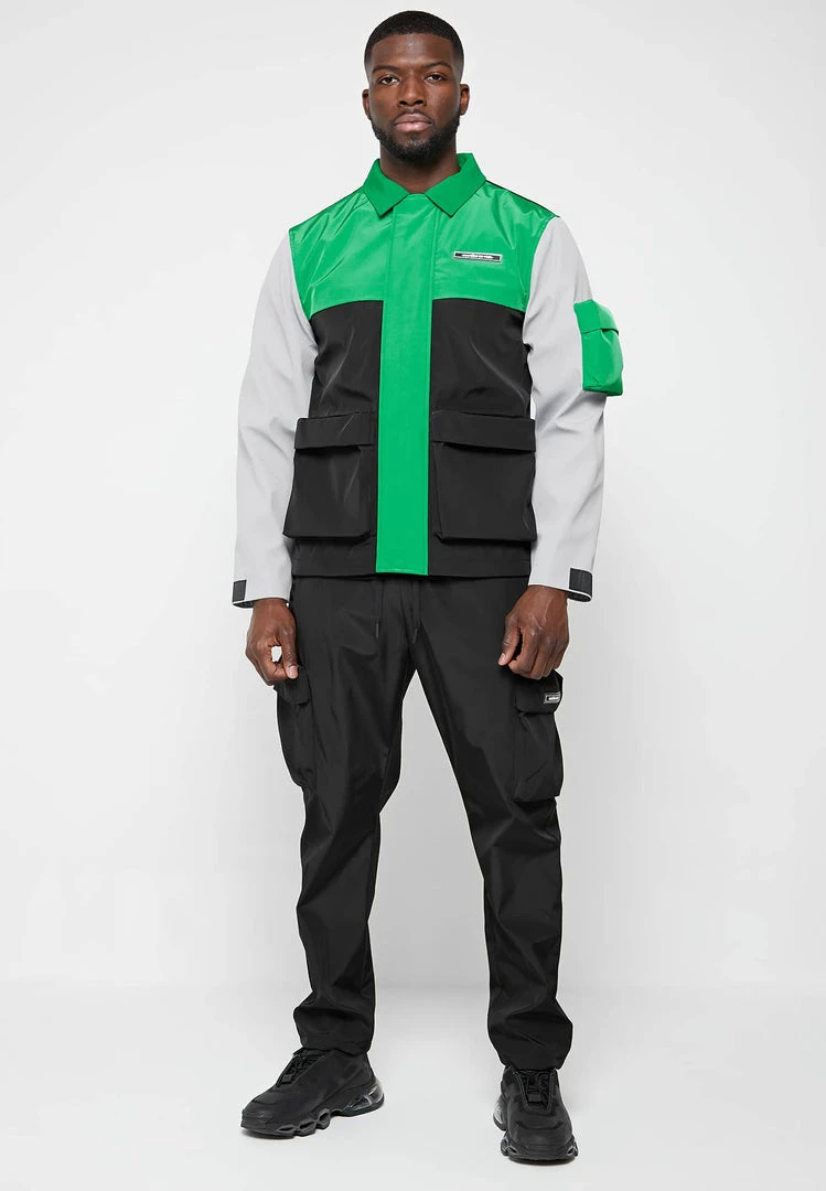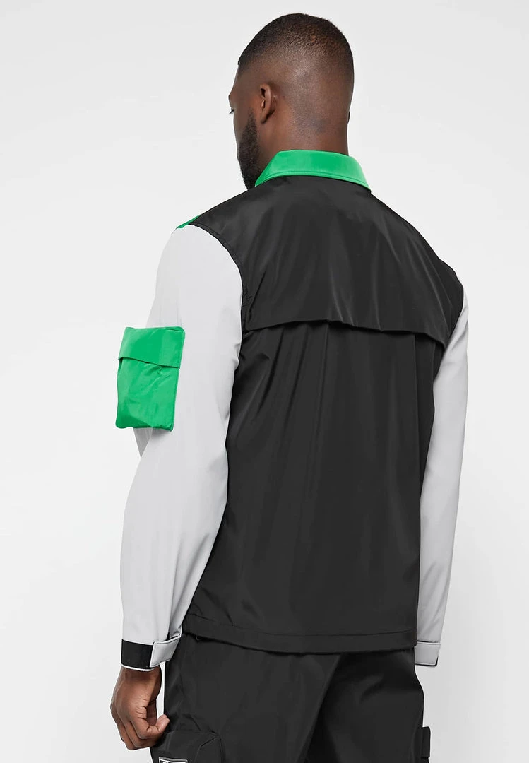 Colour Block Nylon Harrington Jacket with 3D Pocket Detail