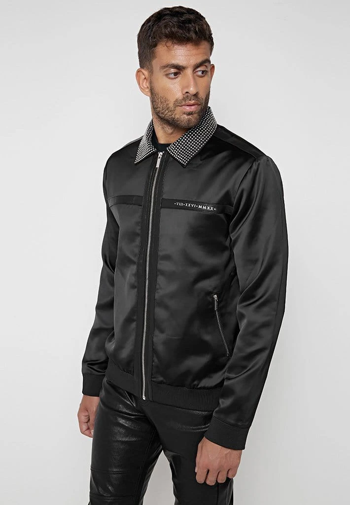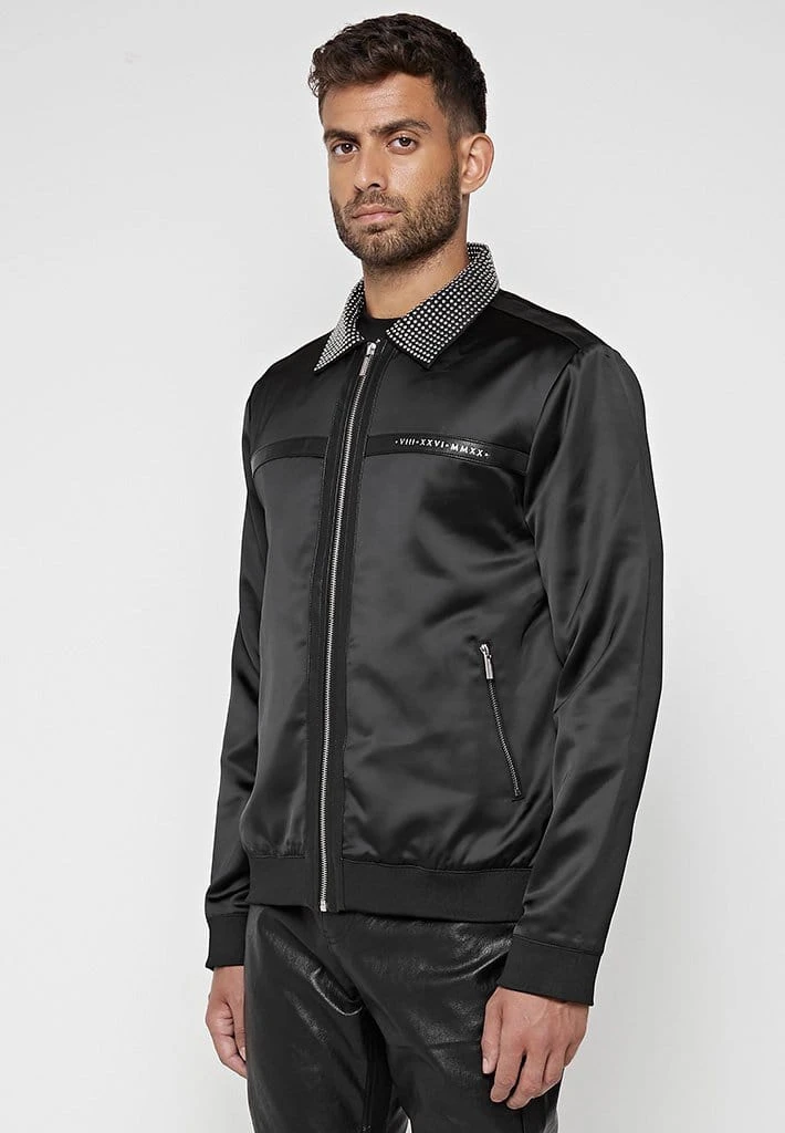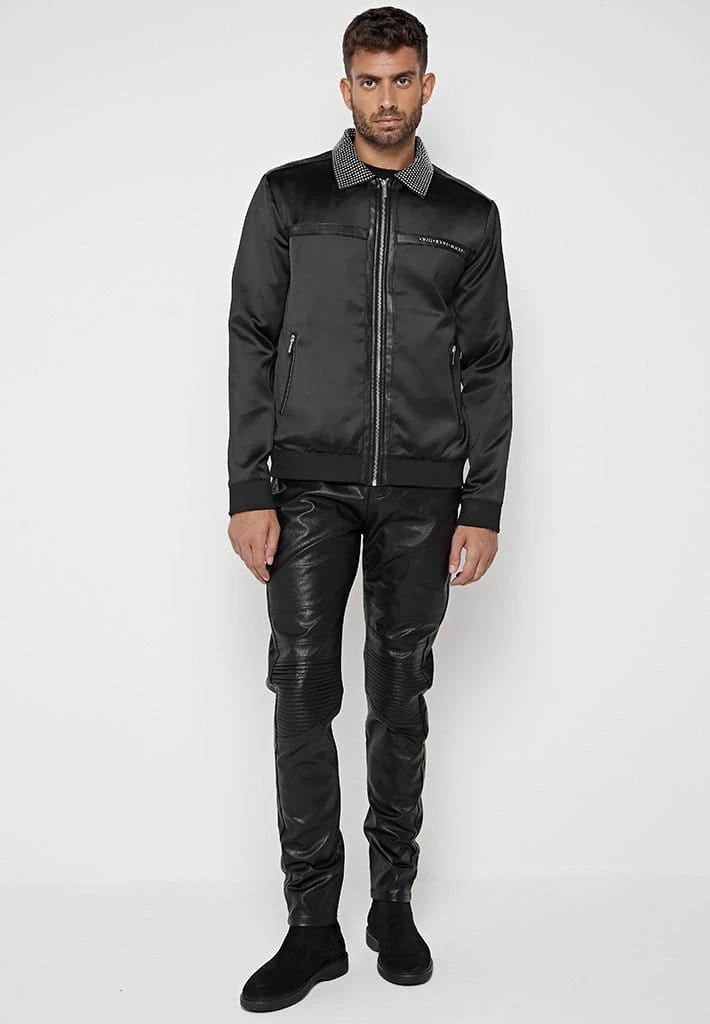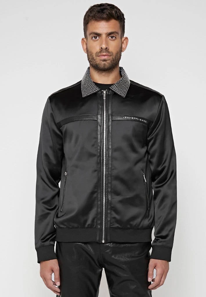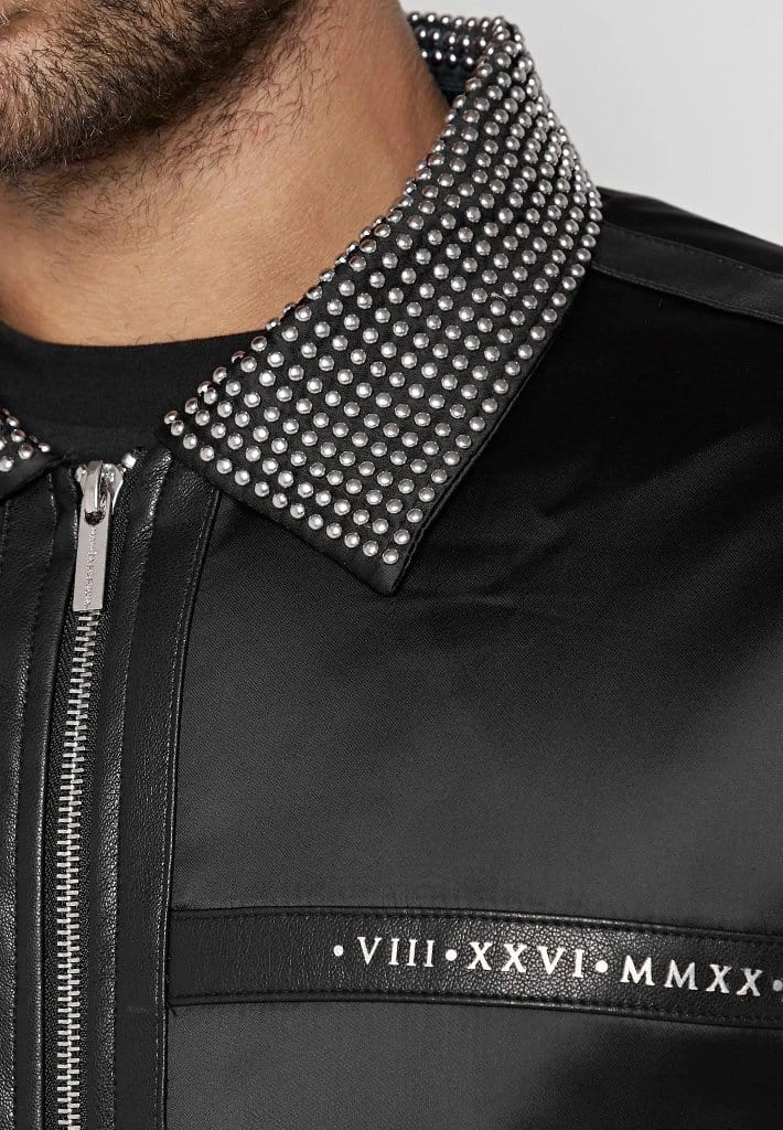 Sateen Jacket with Studded and Vegan Leather Detail