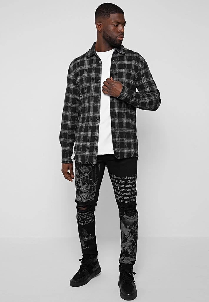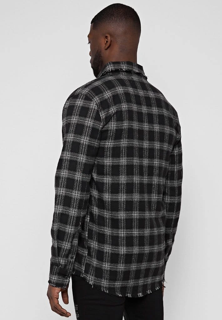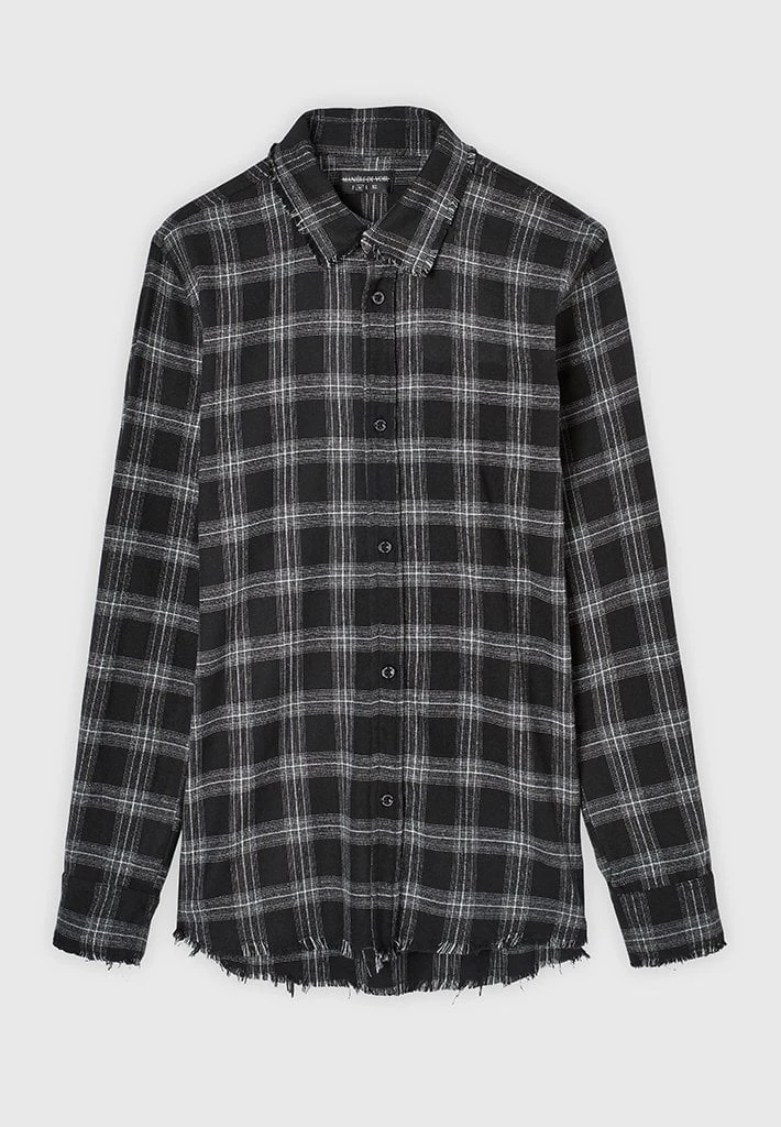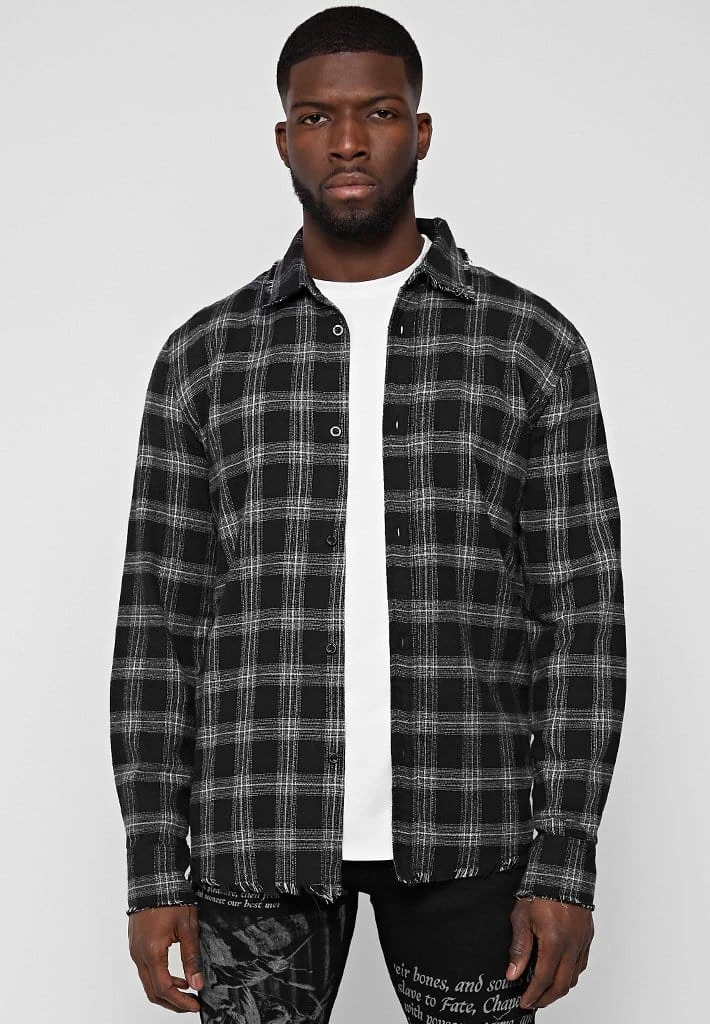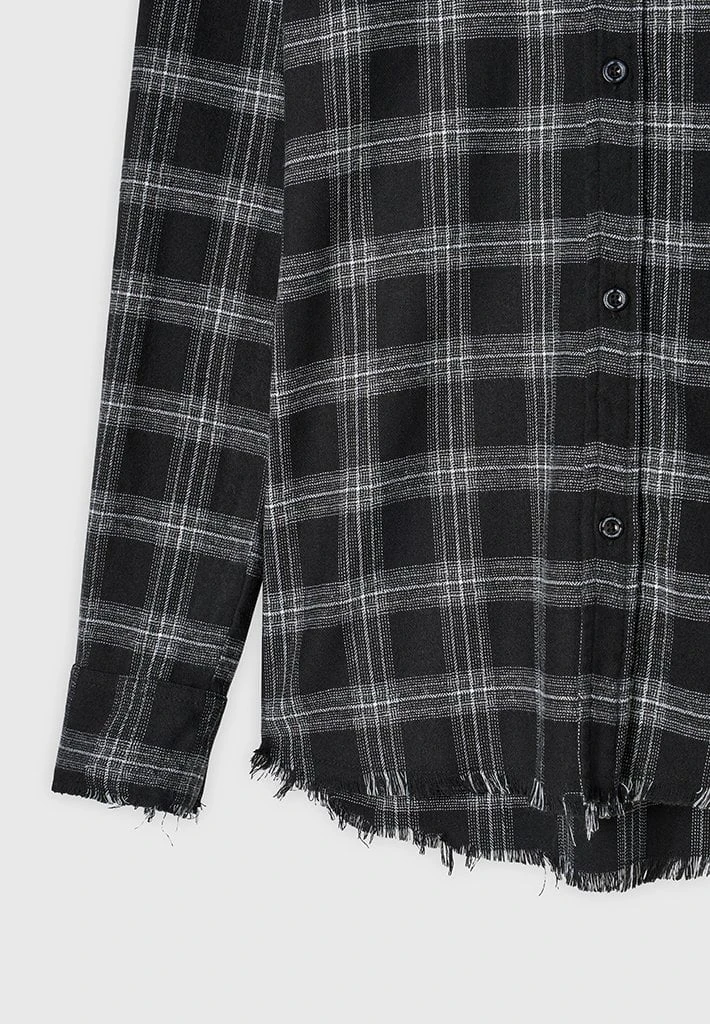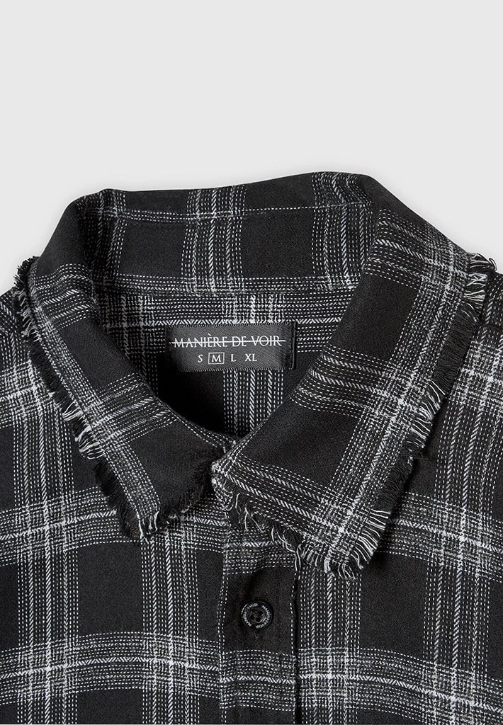 Checked Shirt with Distressed Hem, Collar and Cuffs