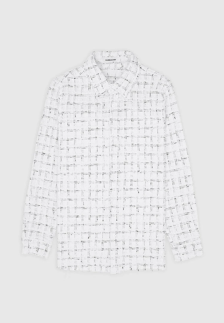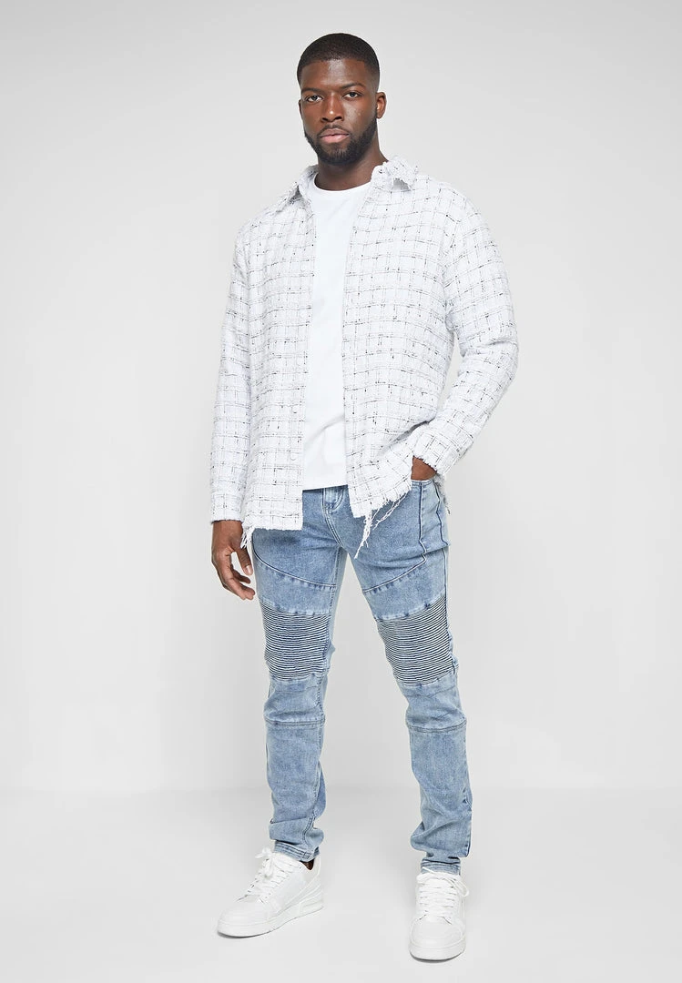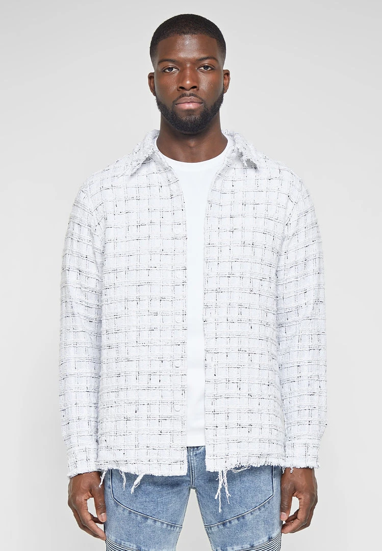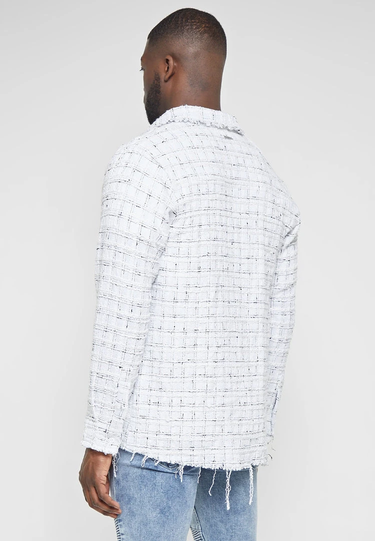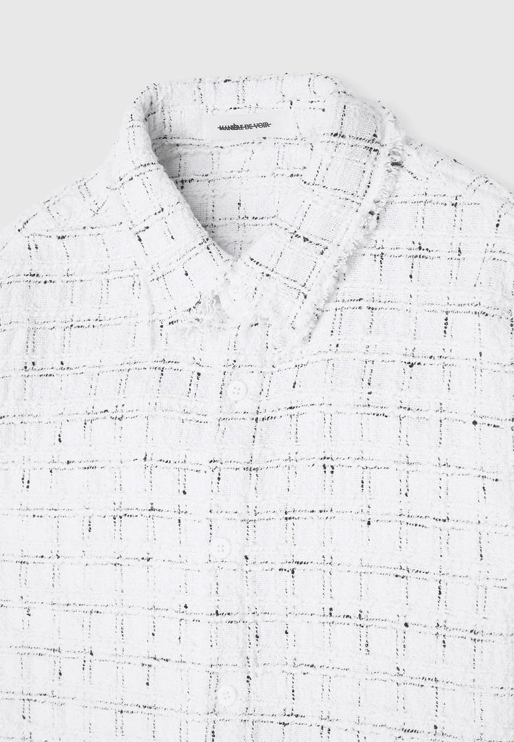 Distressed Tweed Check Shirt in White with Black