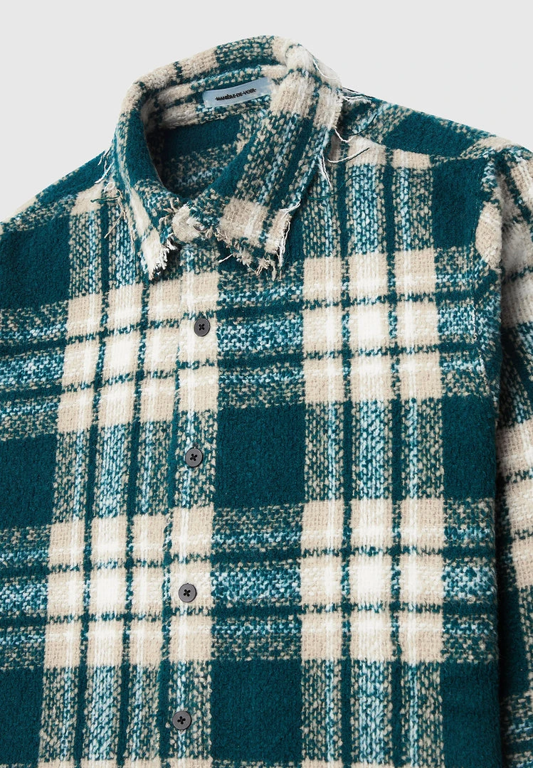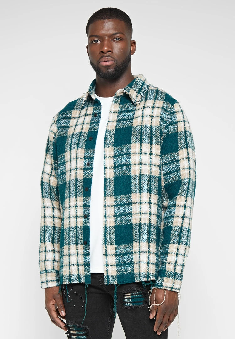 Distressed Tweed Check Fit Shirt in Green with Beige