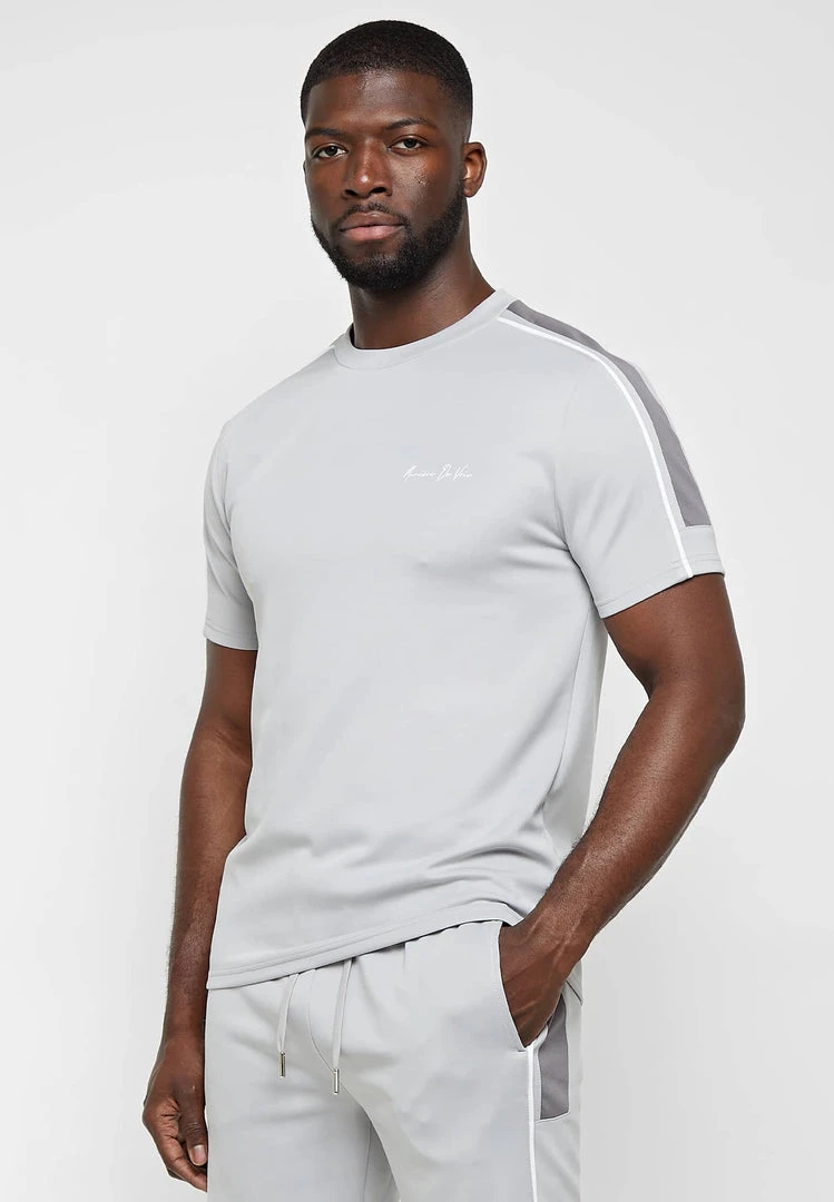 Man T-Shirts SHORTS SETS Piped T-Shirt – Grey