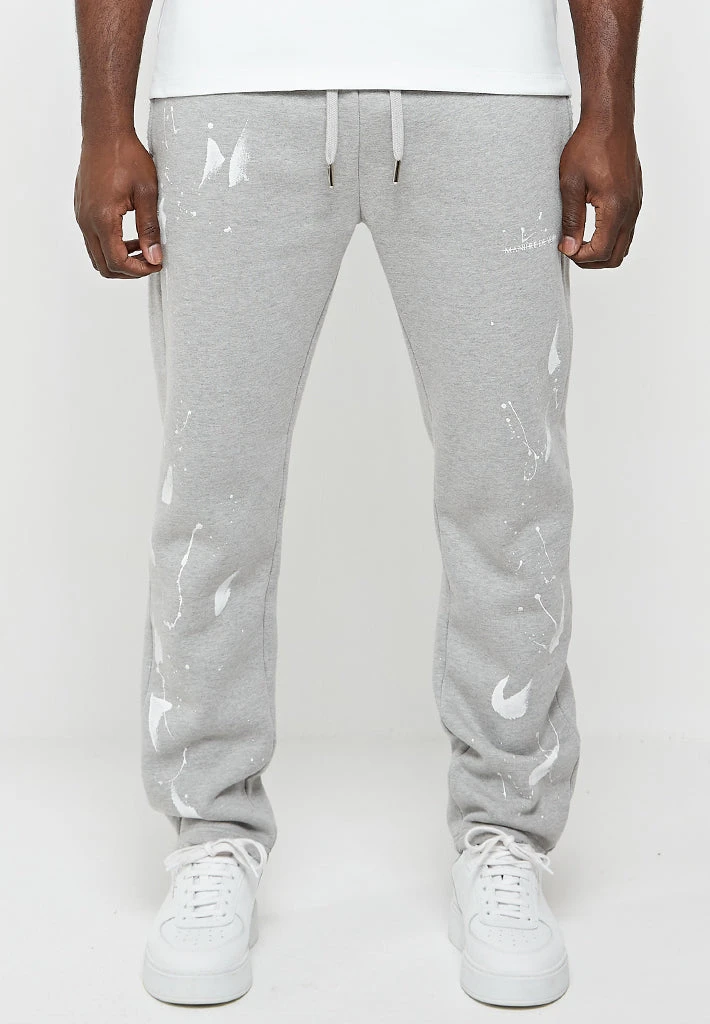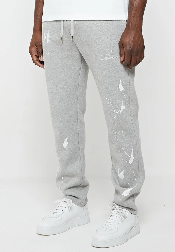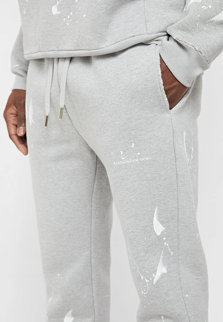Grey Marl Relaxed Fit Jersey Joggers with Paint Splatter and Distressing