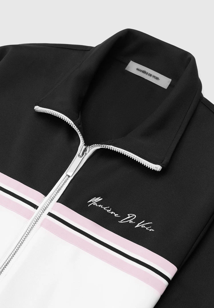 Zip Through Striped Jacket with Signature Branding