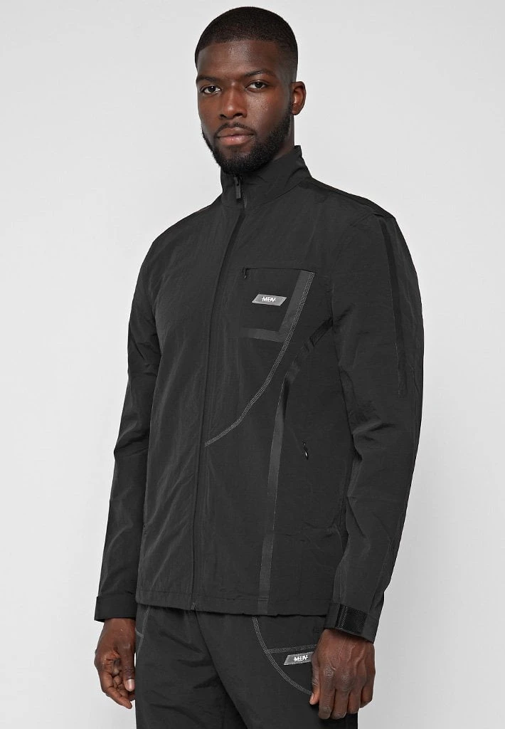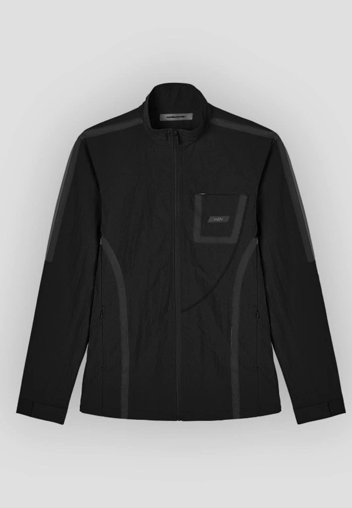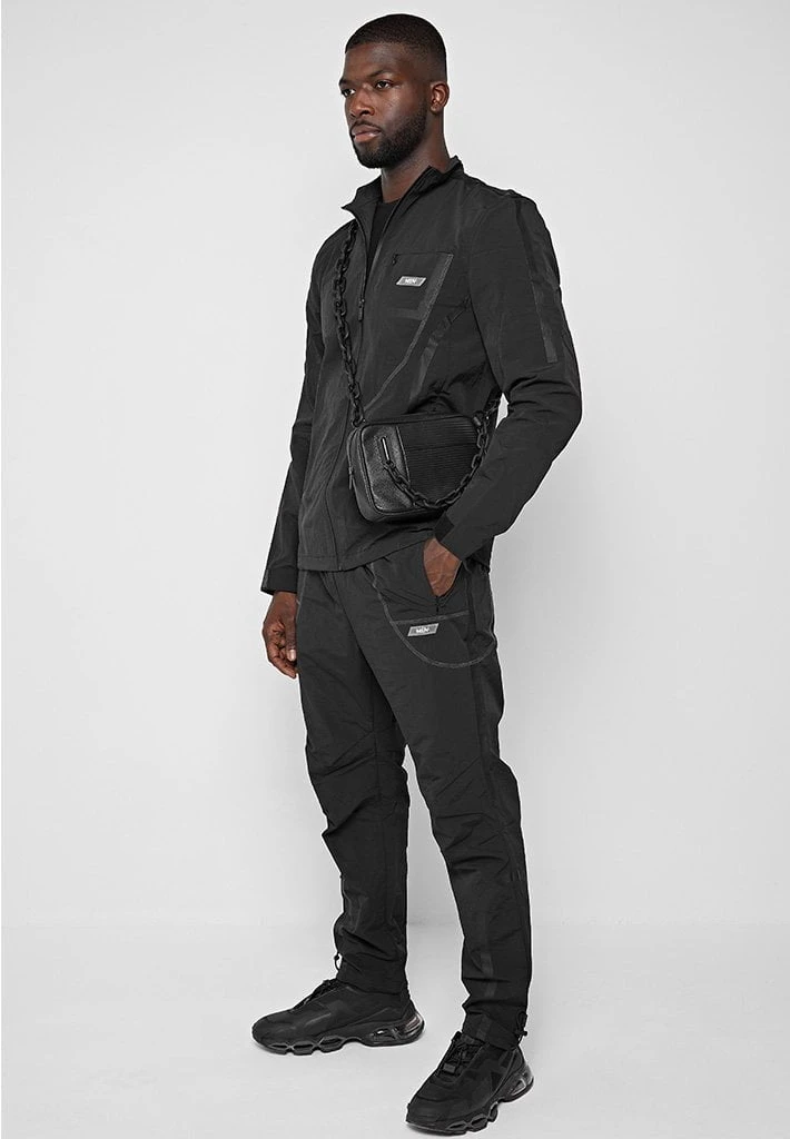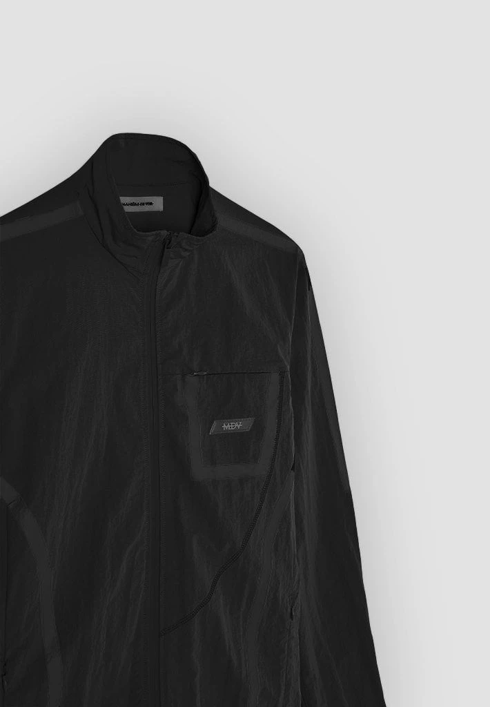 In our Crinkle fabric, the Crinkle Nylon Taped Track Jacket is an edgy take on the streetwear tracksuit category. The design features heat seal tape on most seams, contrast stitch detailing, and an internal adjustable bungee cord. The style maintains the “cool” look with the MDV silicone branding.