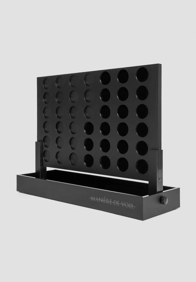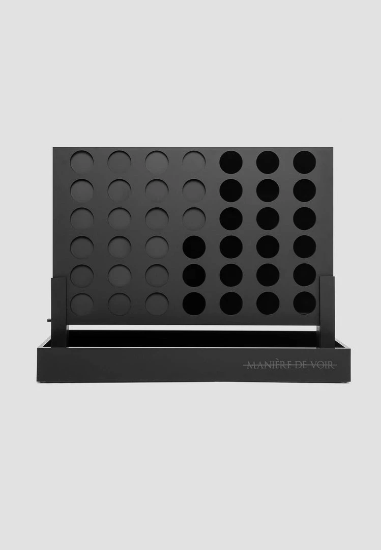 High gloss and matte counters inside a matte black frame. The clean and minimal aesthetic of this classic game makes this a great decor piece even when it’s not being played.