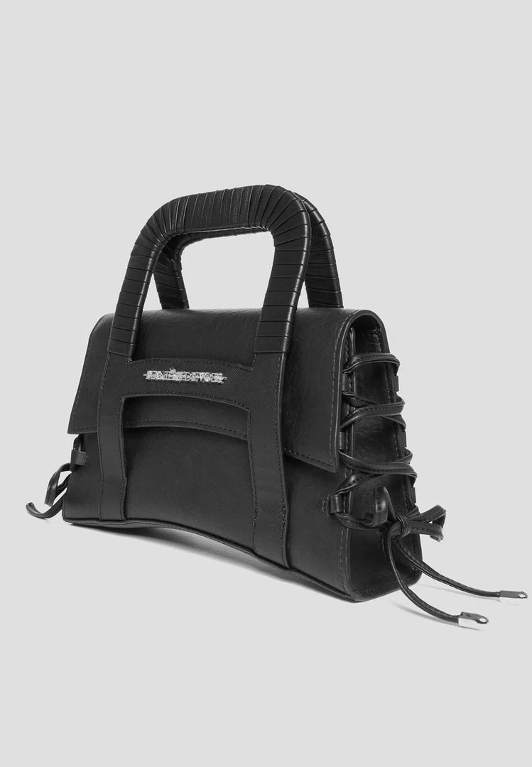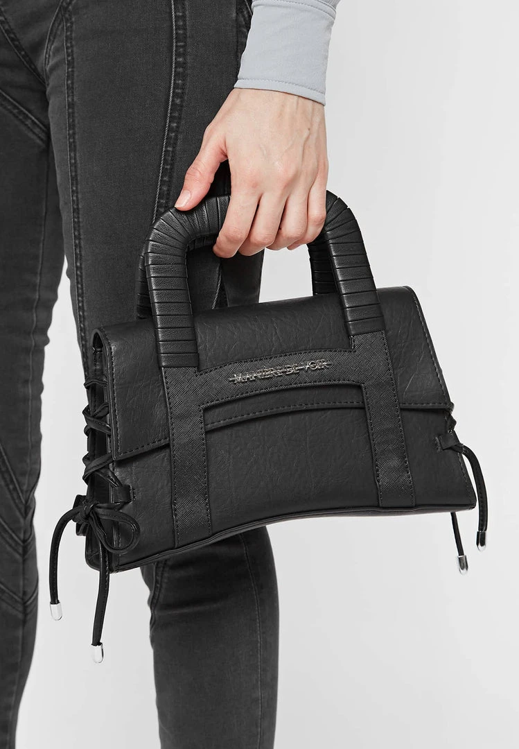 Crafted from matte textured vegan leather, this bag is versatile to accompany you on nights out or day errands. It features lace up sides with silver toggles for a clean aesthetic throughout.