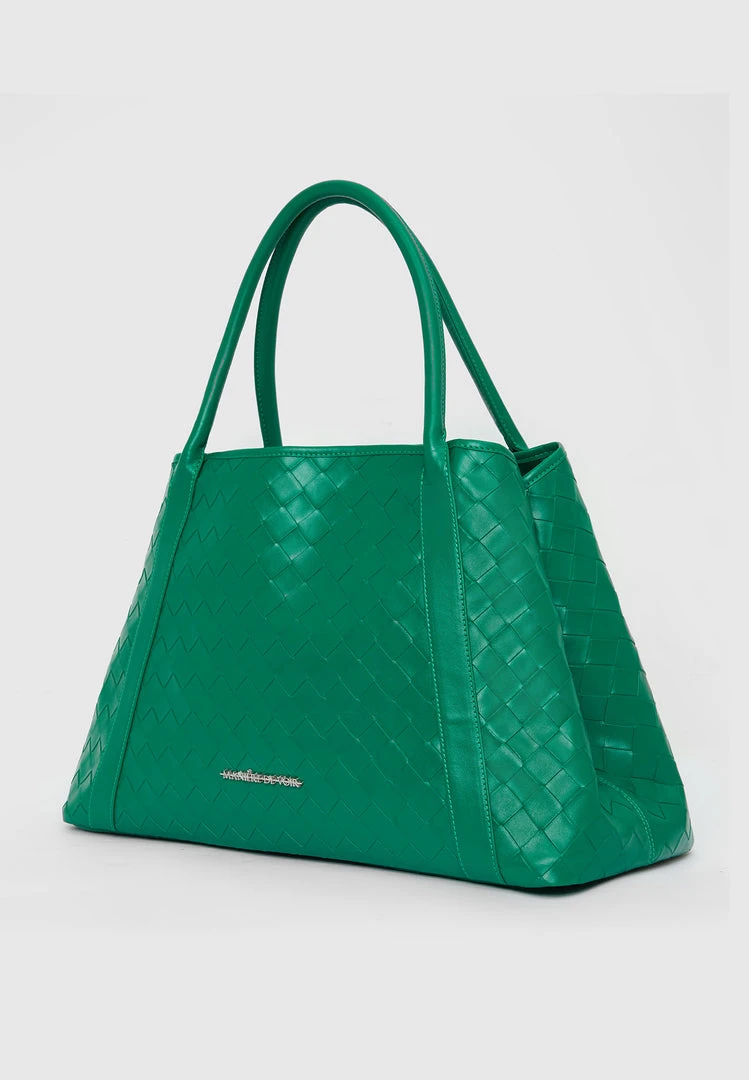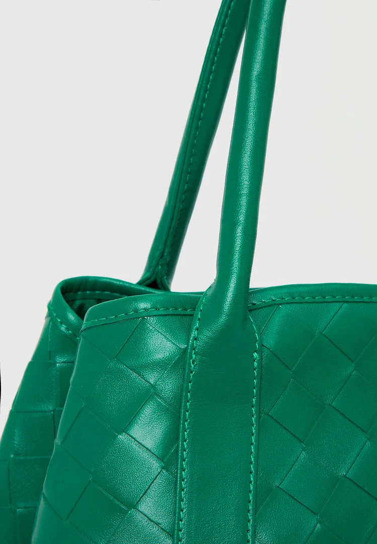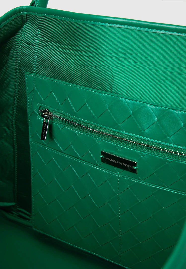 A practical yet stylish large tote bag that serves all functionality needs. We have selected fabrics to ensure this lasts a lifetime with durable vegan leather. The woven texture elevates this bag so it can be used for day to night occasions.