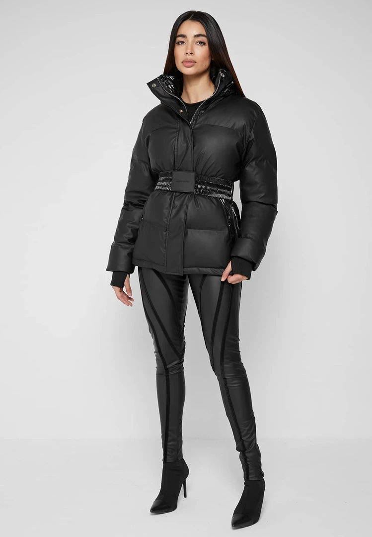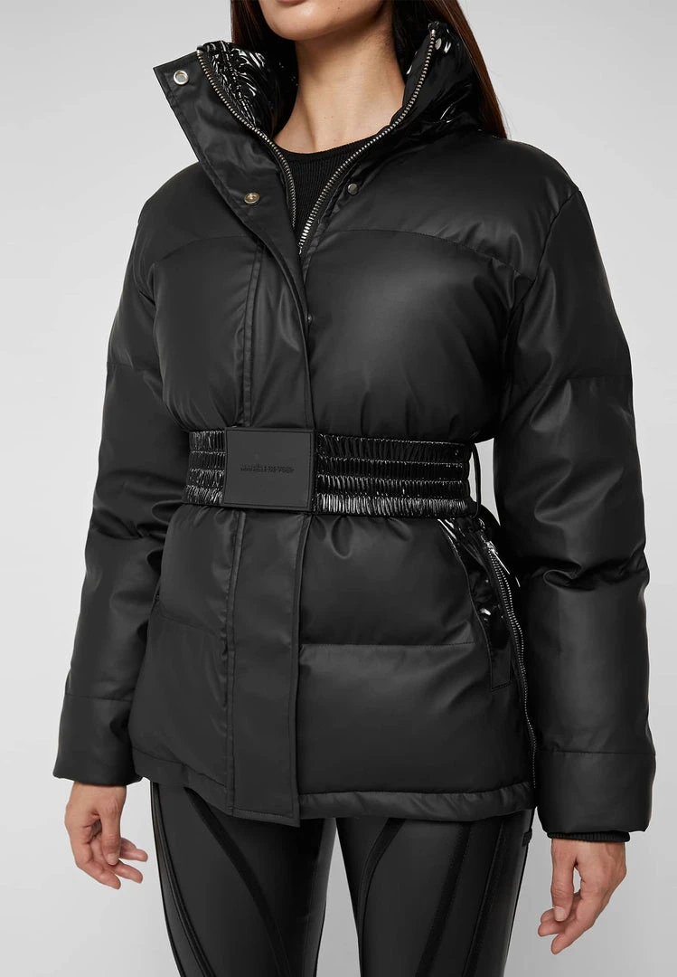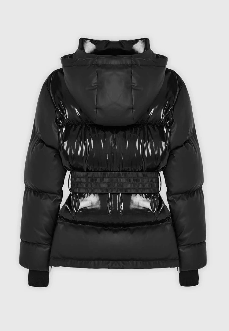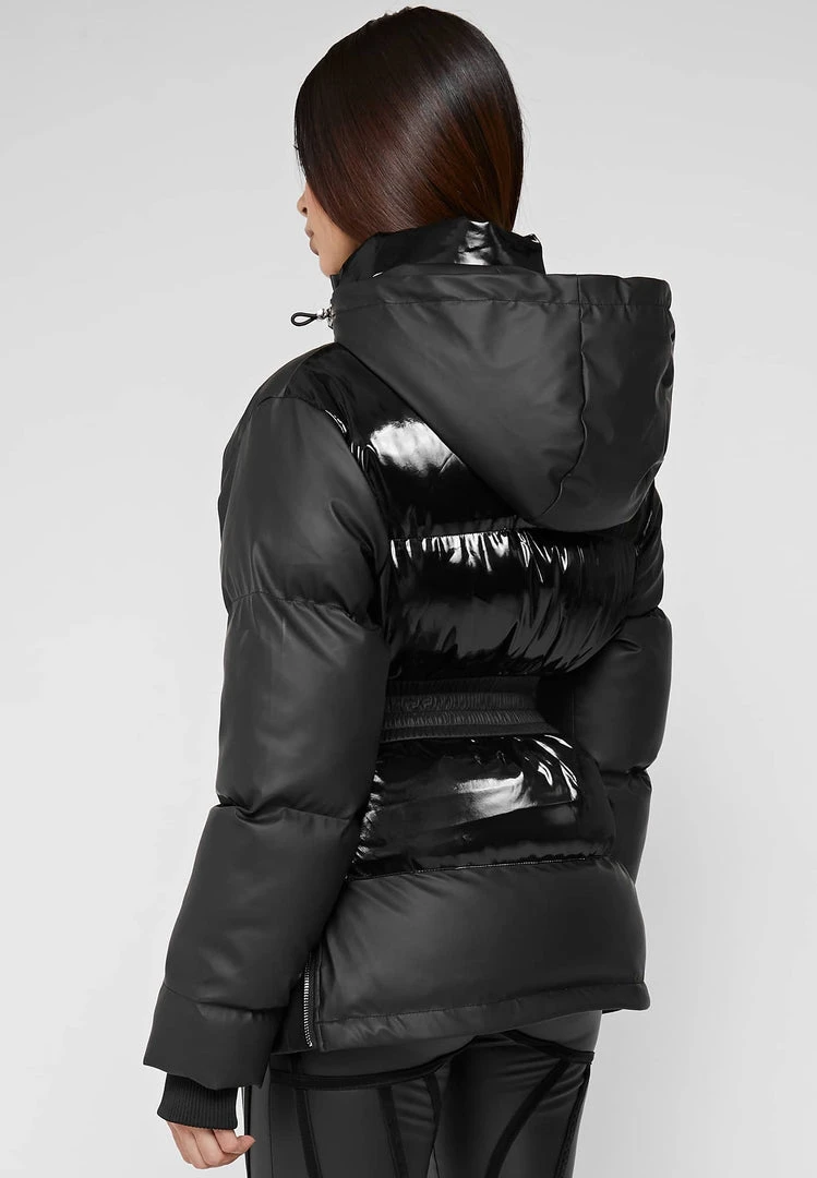 Black Matte & High Shine Belted Puffer Jacket