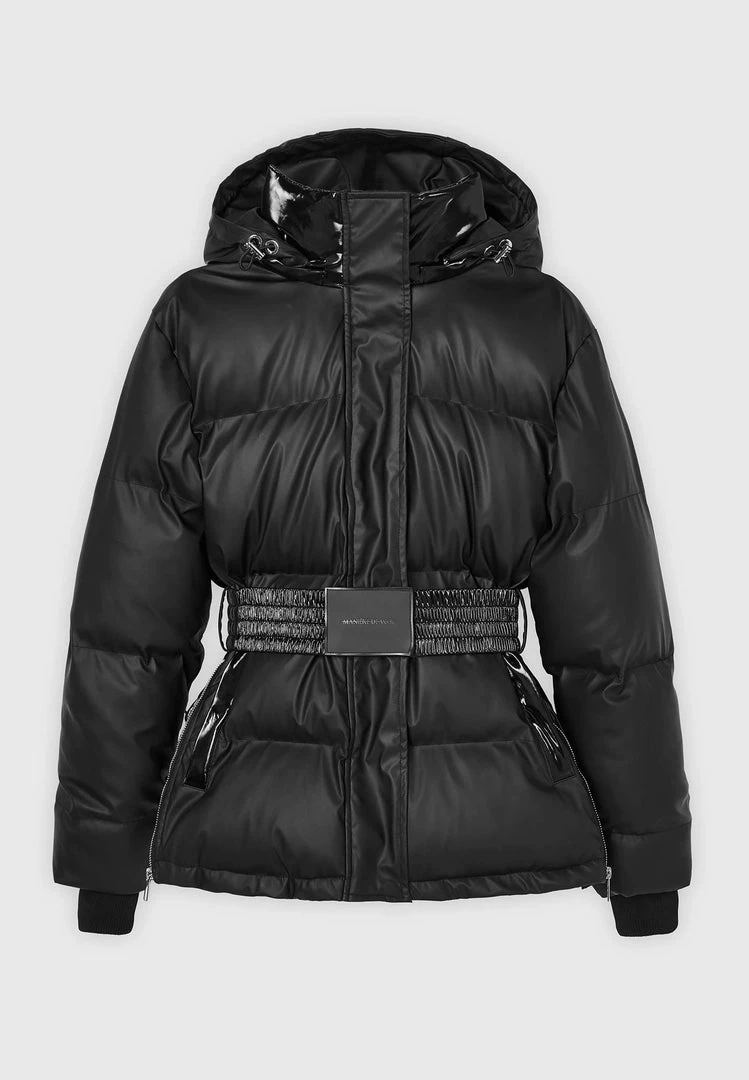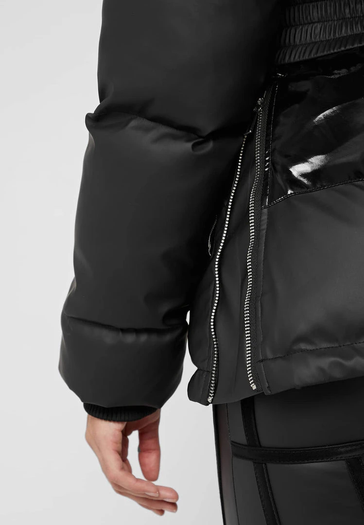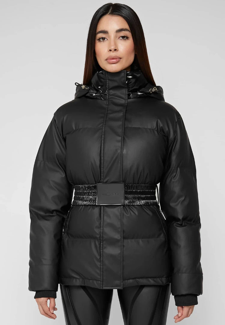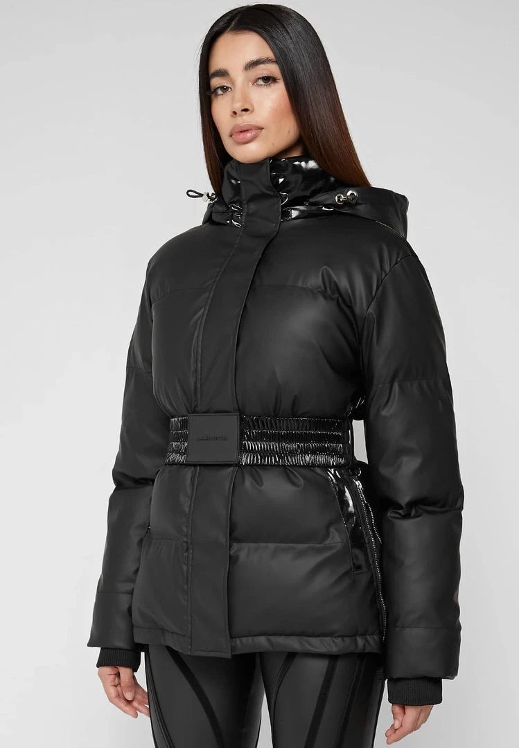 Black Matte & High Shine Belted Puffer Jacket