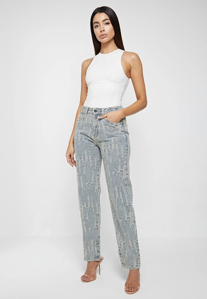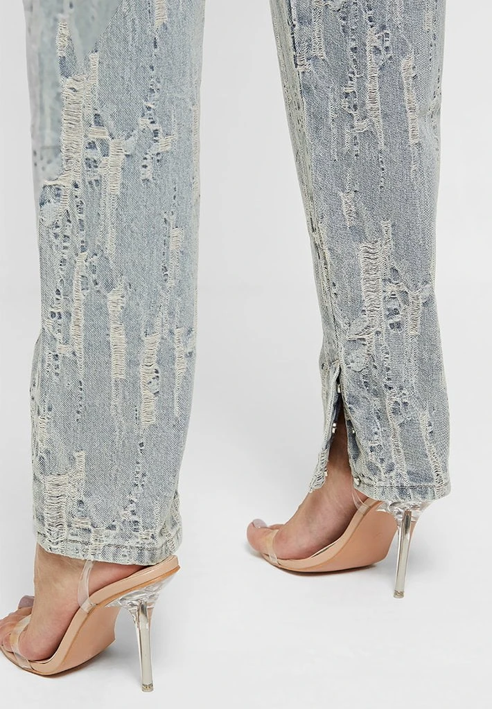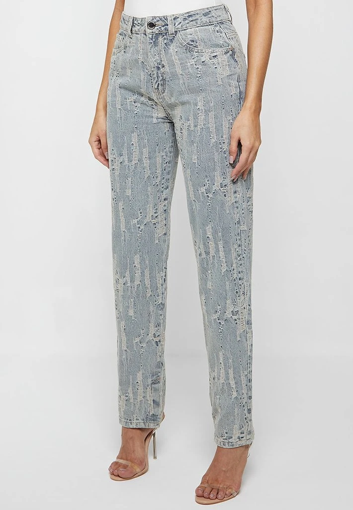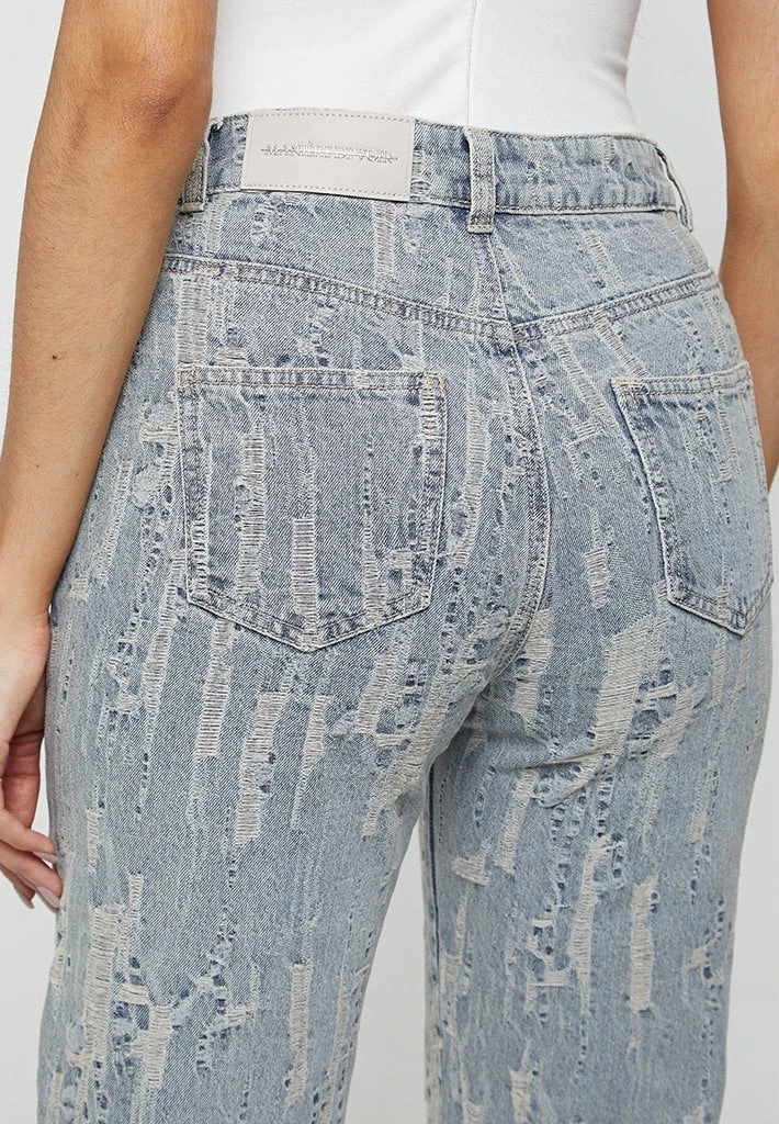 These jeans feature all over distressing and have been washed in an ecru colour for a unique tint.
