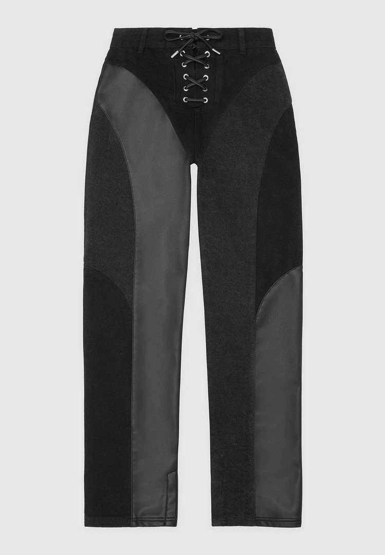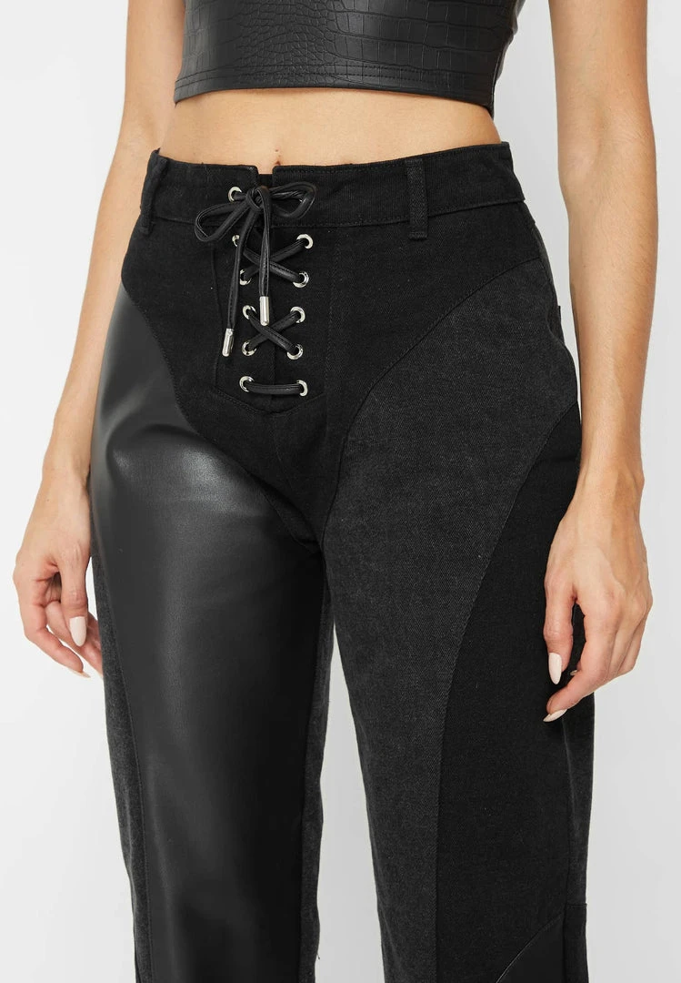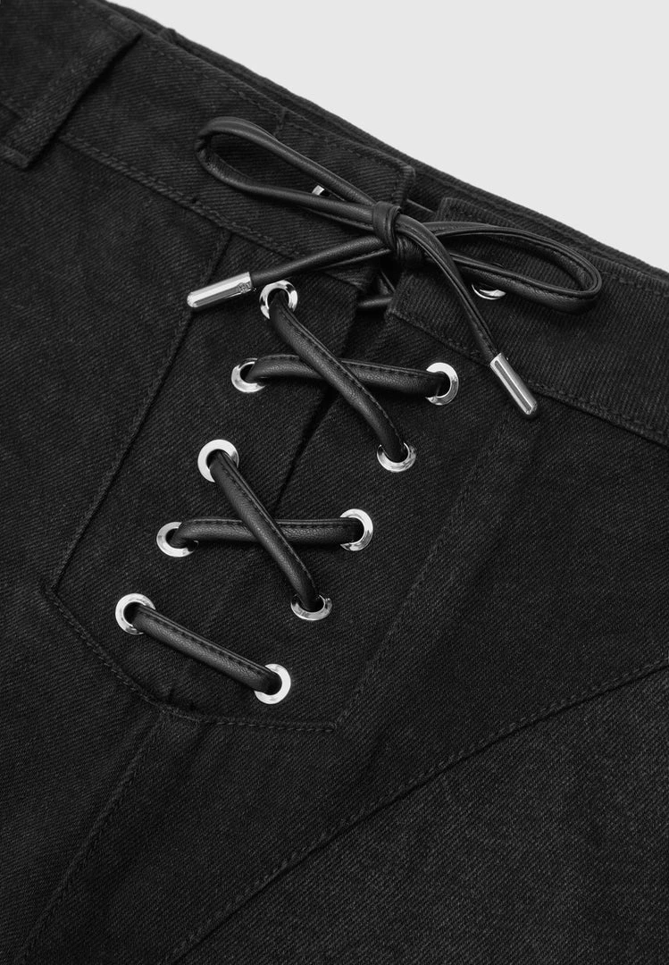 Black Lace Up Patchwork Mom Jeans