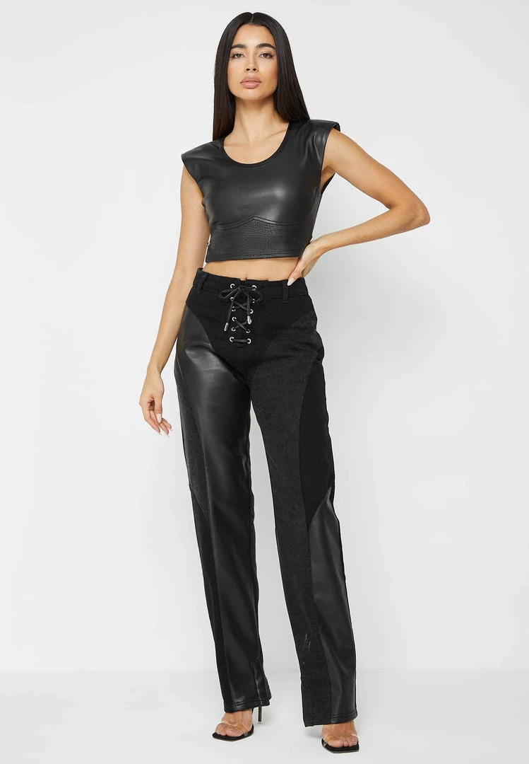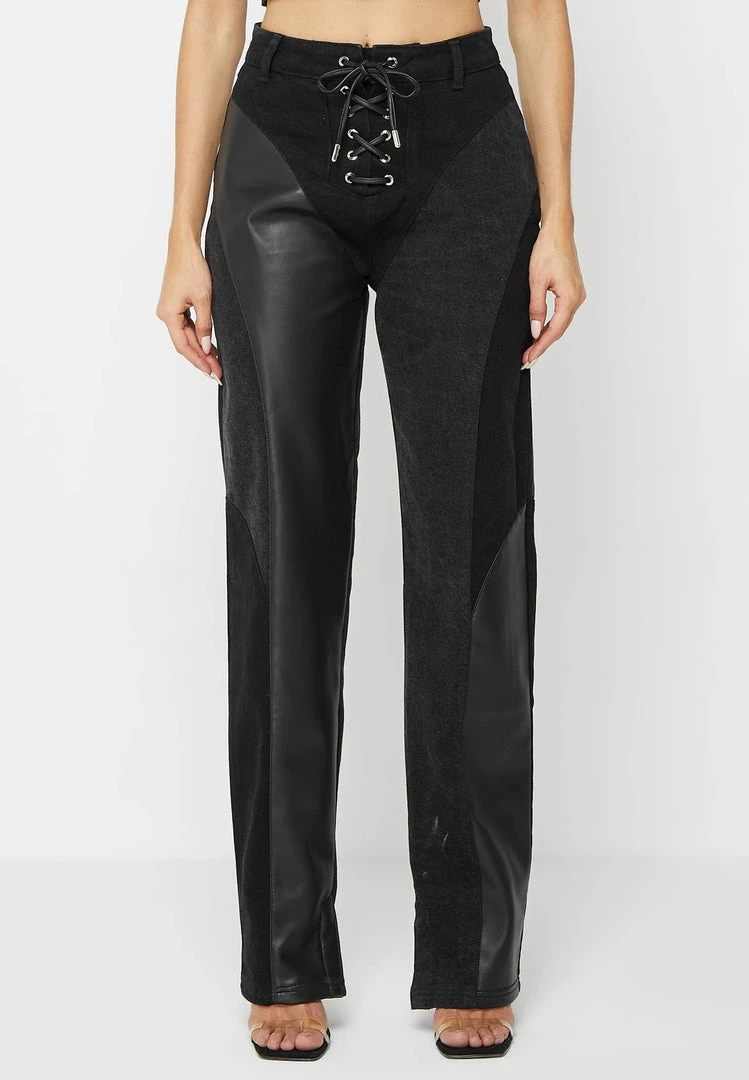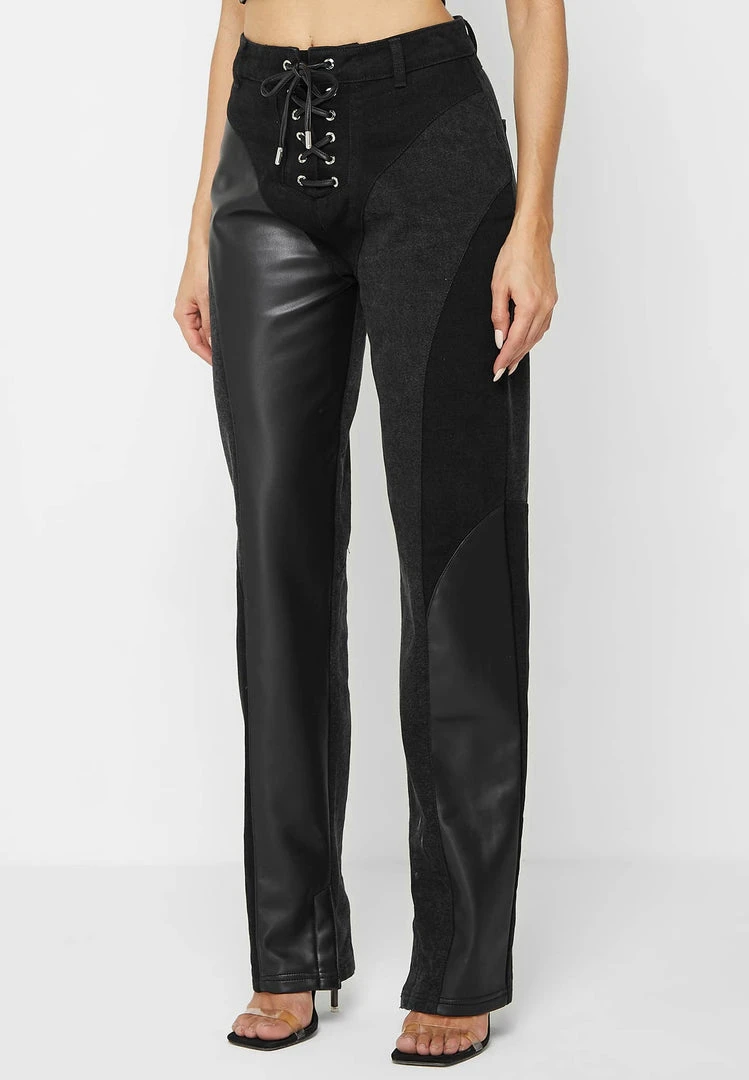 The jeans are perfect for any day to night occasion, the lace up detailing adds a corset-like effect that compliments your silhouette.