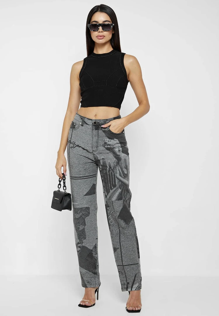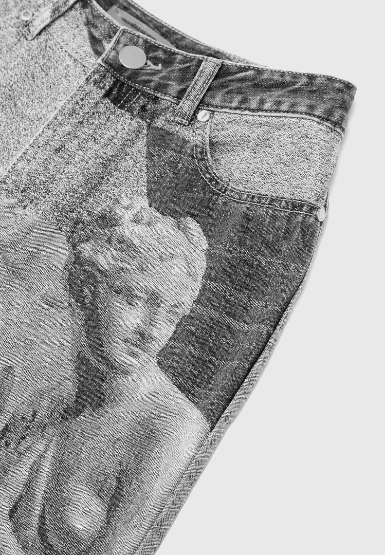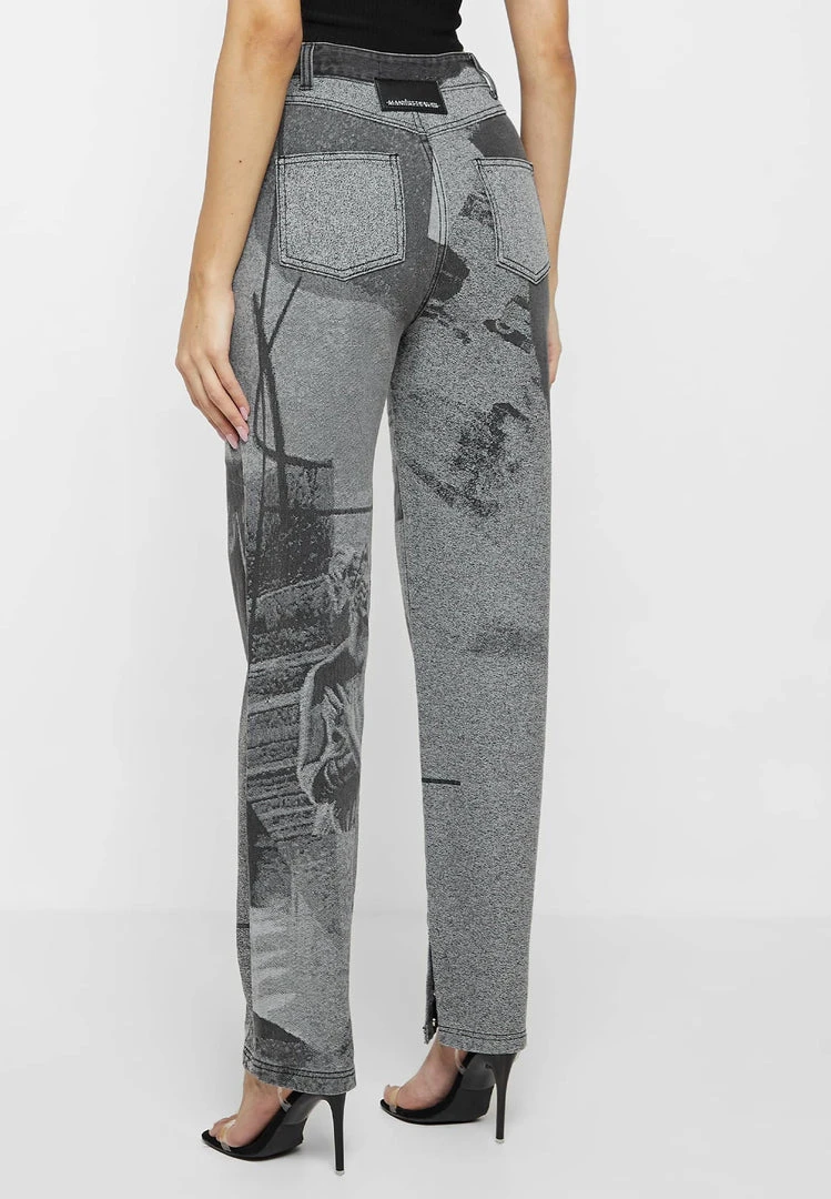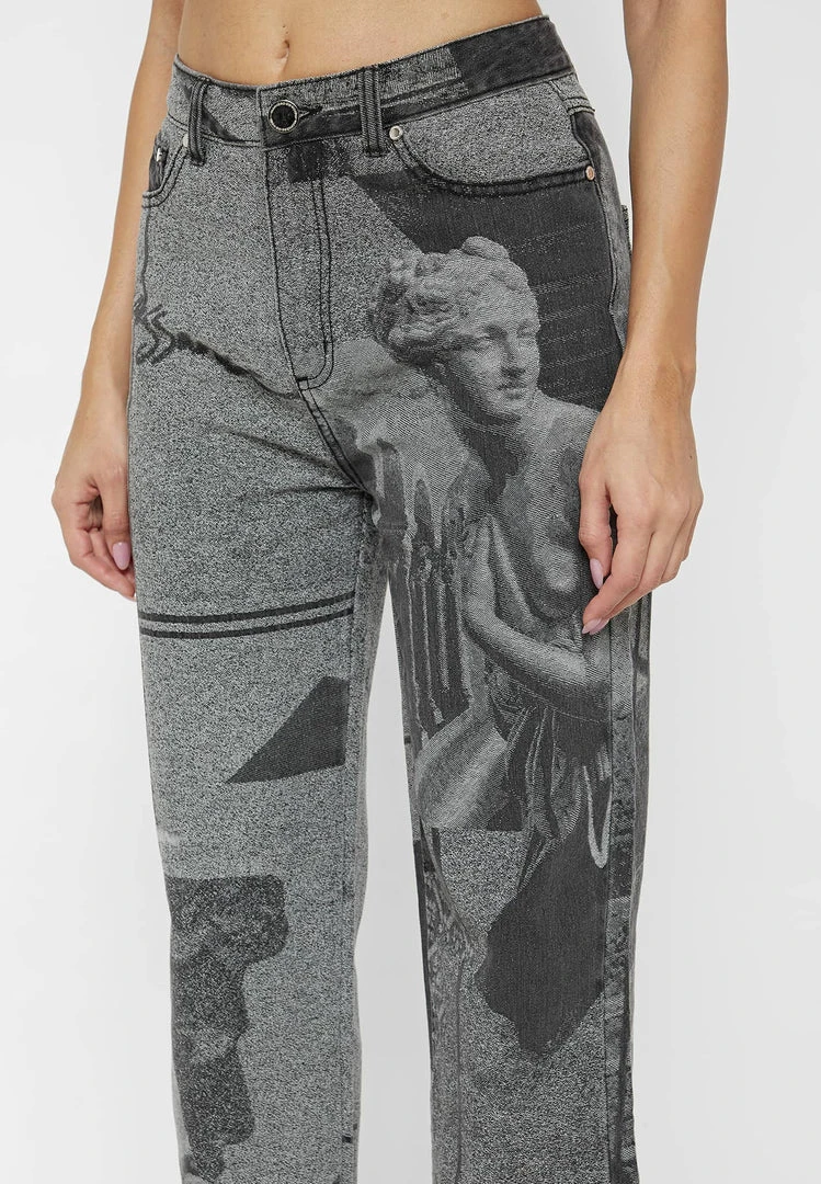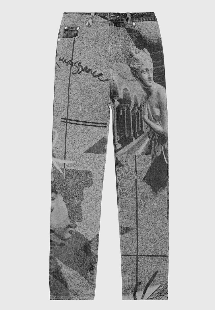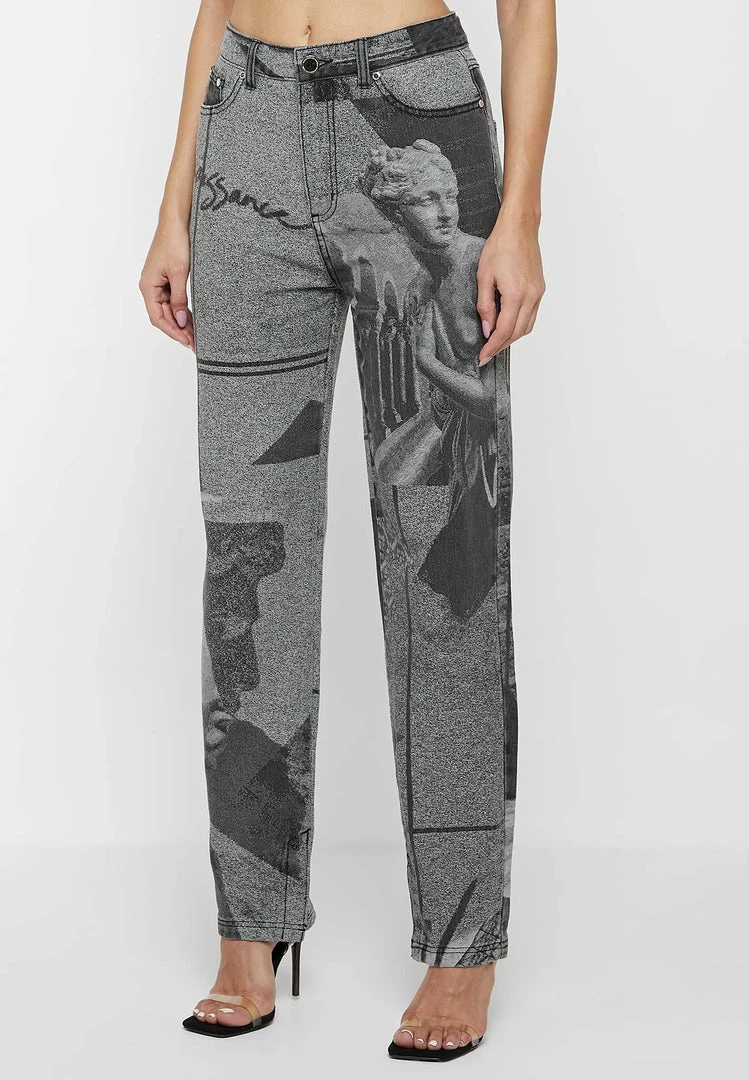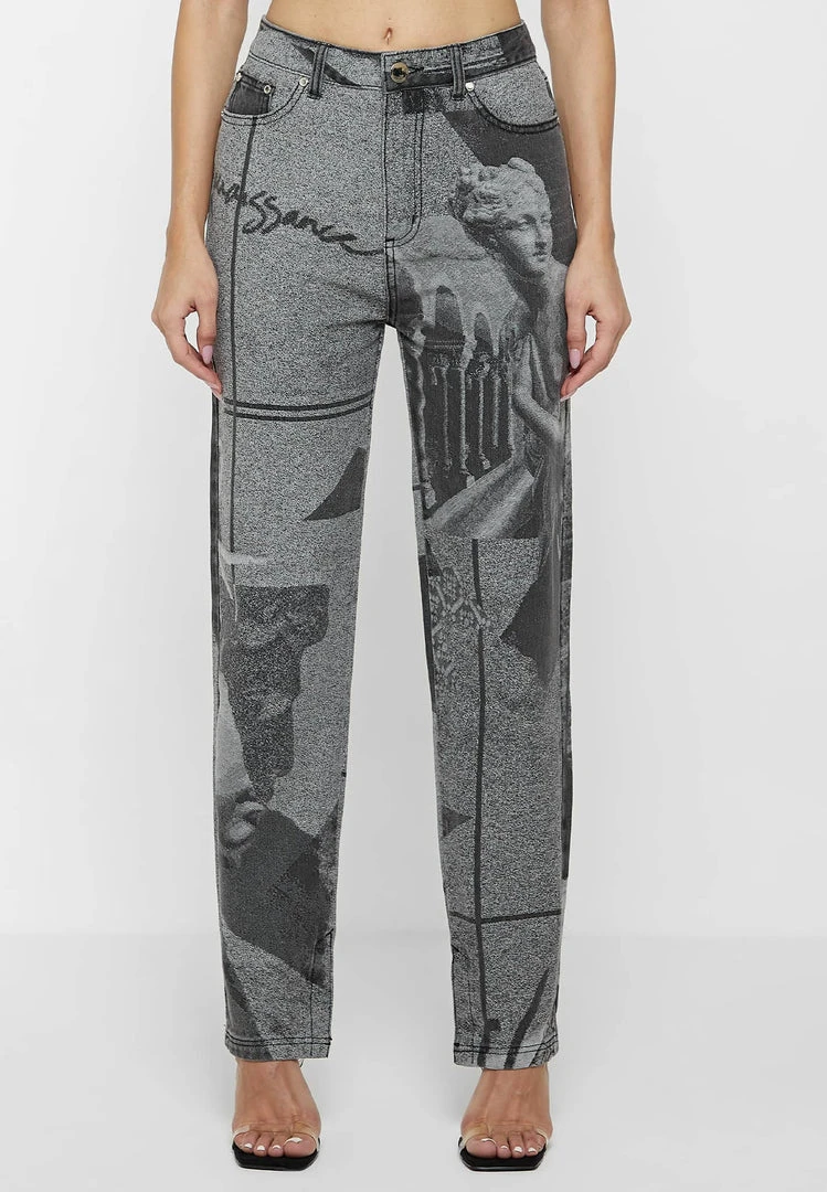These unique mom jeans are a must-have for any wardrobe. The Renaissance print is a simple yet innovative way of making these jeans a stand-out piece in any wardrobe.
