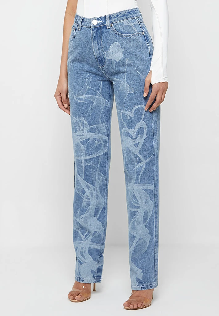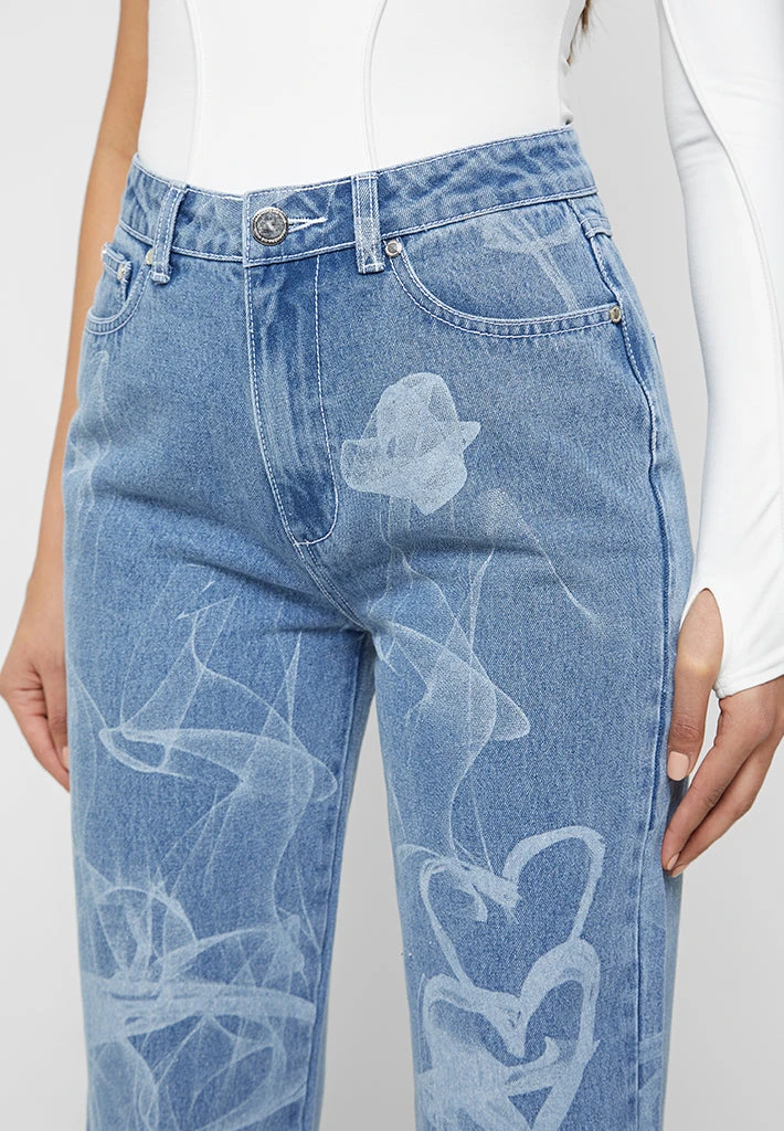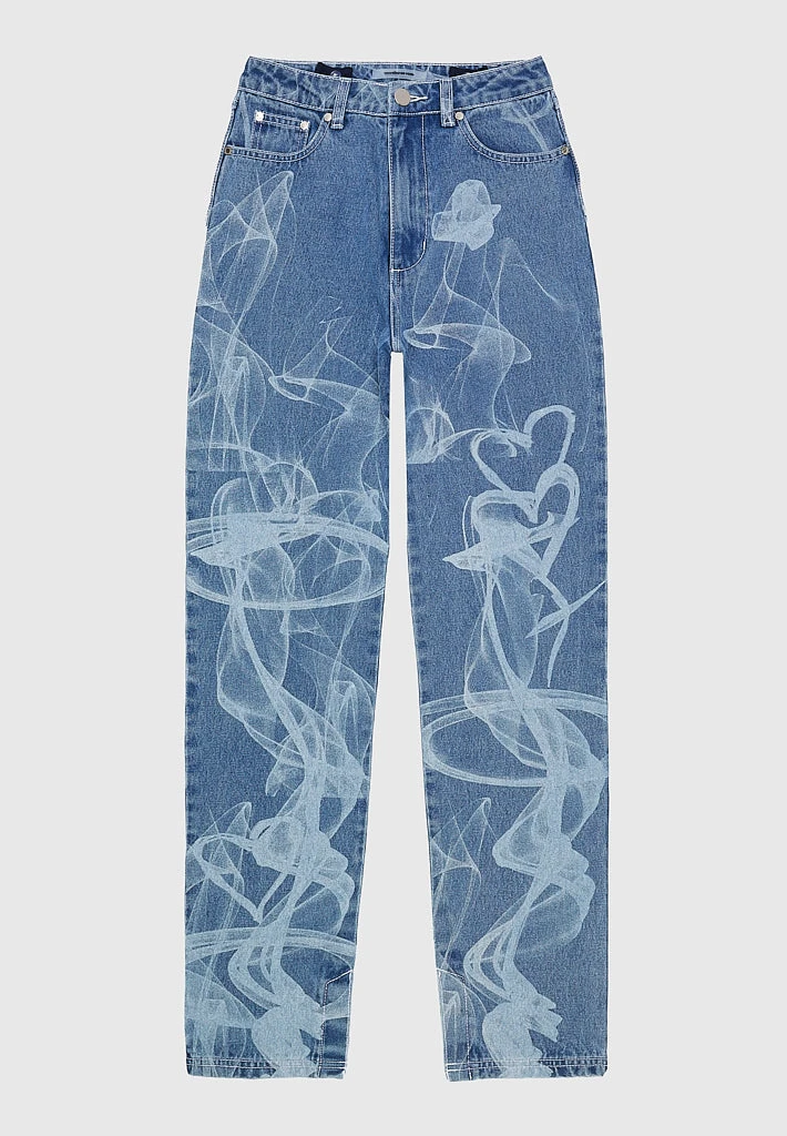 With the smoke print being designed in house, these mom jeans offer a unique take on a classic staple.