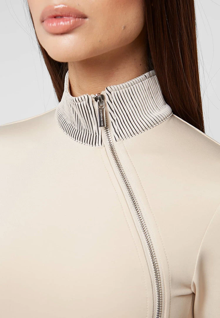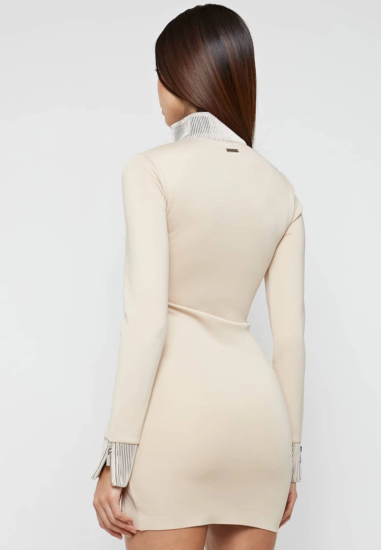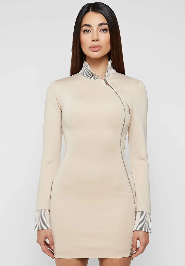 Beige High Neck Neoprene Zip Detail Dress
