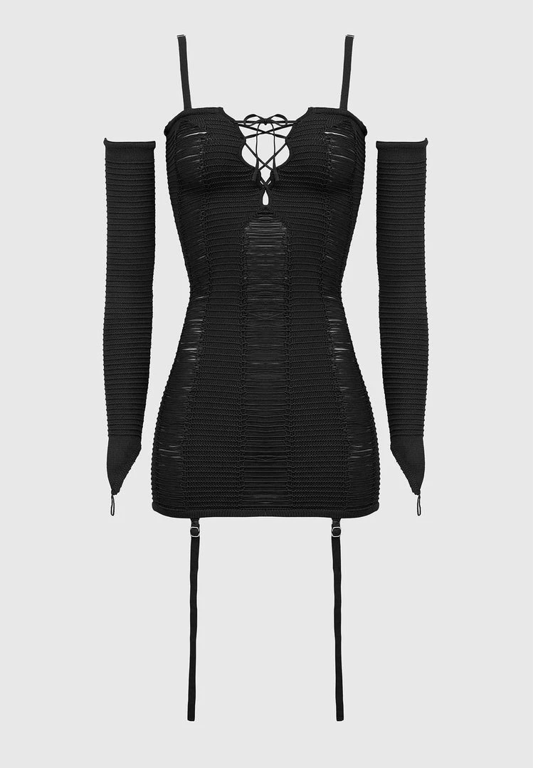 Transforming this traditionally casual dress into a statement going out dress perfect for any occasion. The suspender detailing at the hem adds a sultry feature to this dress. Style with a pair of heels to elongate your legs.