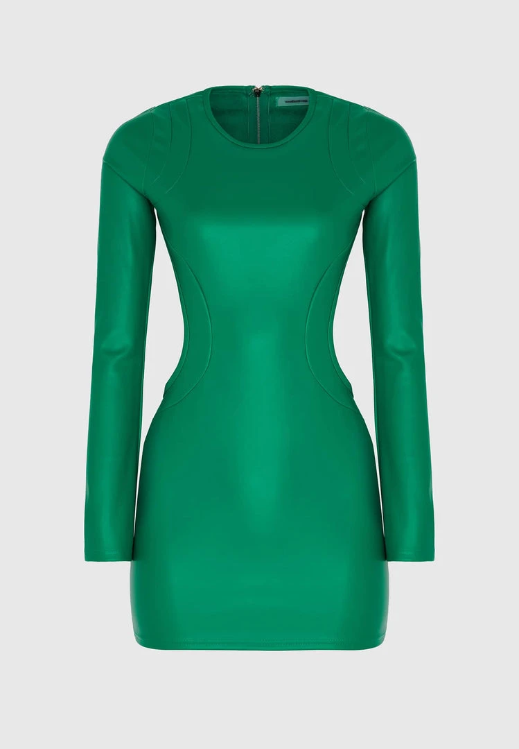 Green Vegan Leather Backless Dress