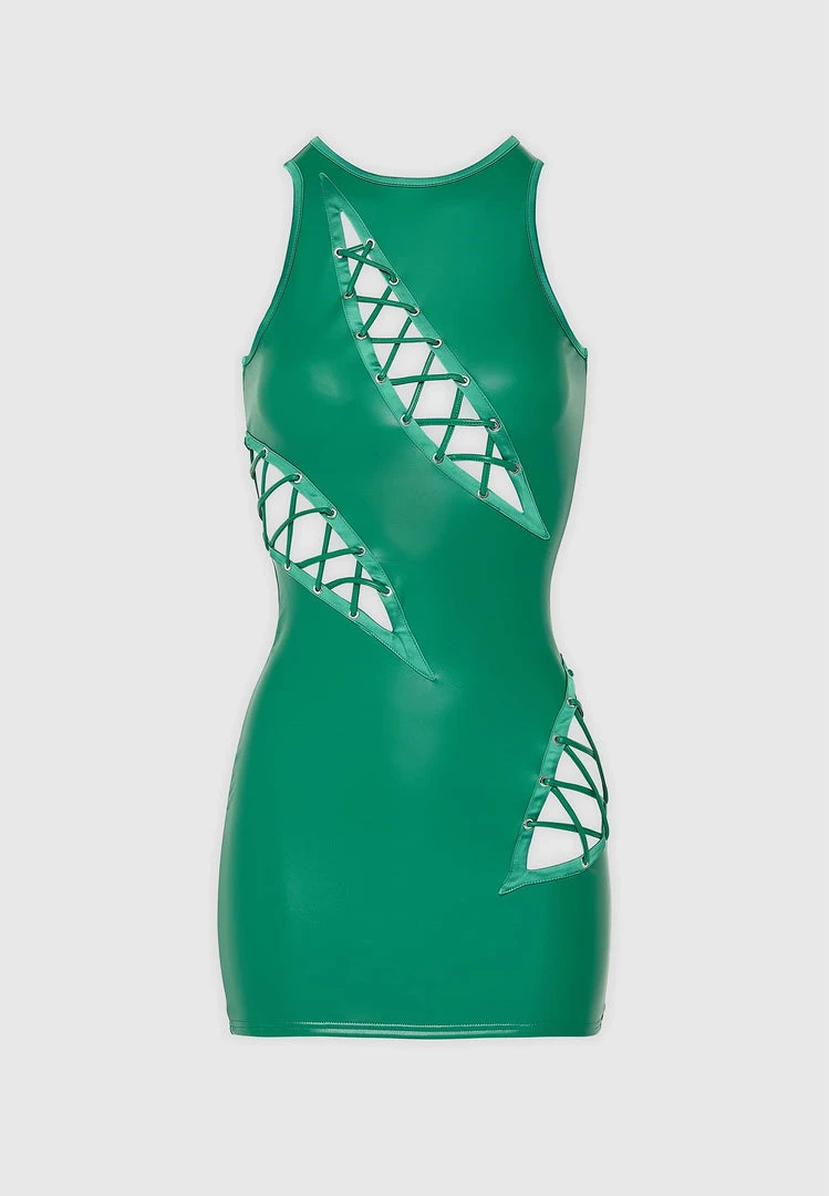 Green Vegan Leather Cut Out Mini Dress