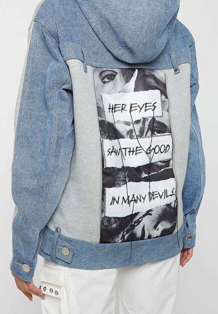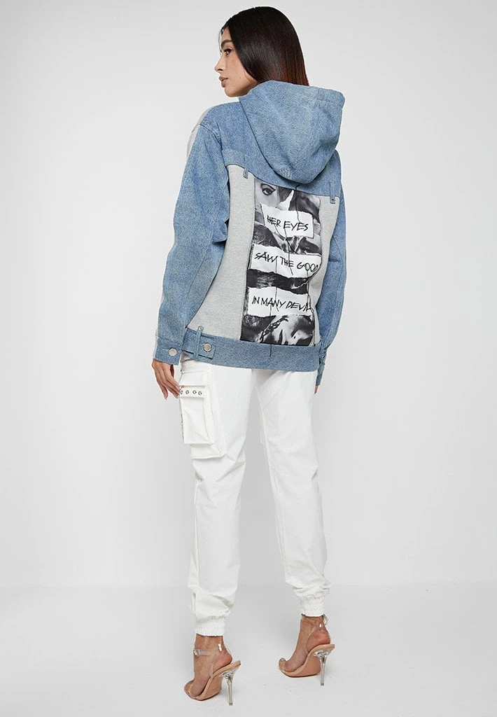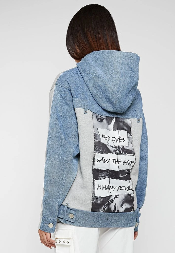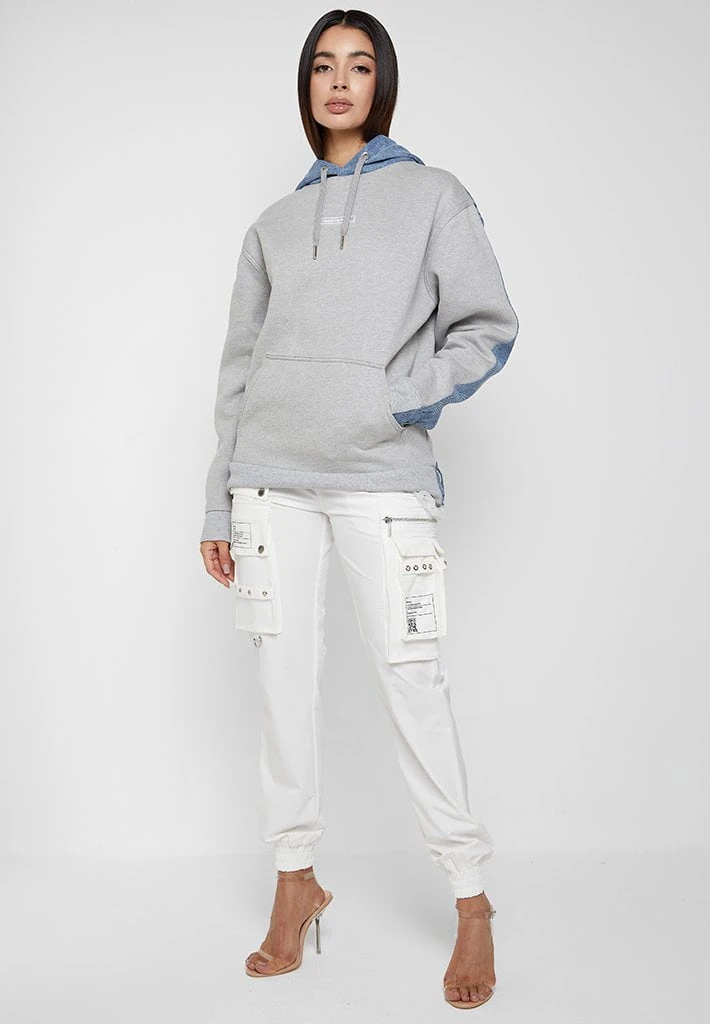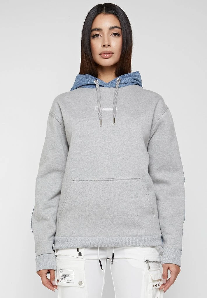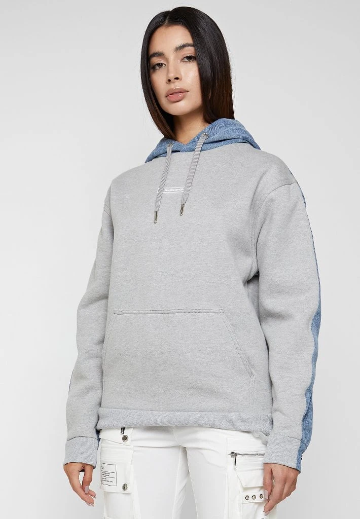 With details such as 3D embroidered text and loose distressing, the essence of this style exudes edgy street and the denim panelling ties in the aesthetic of this style together. Heavyweight jersey has been used to keep you comfy and warm.