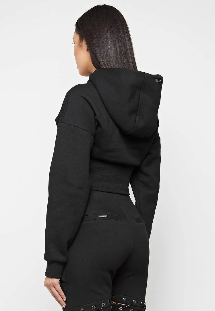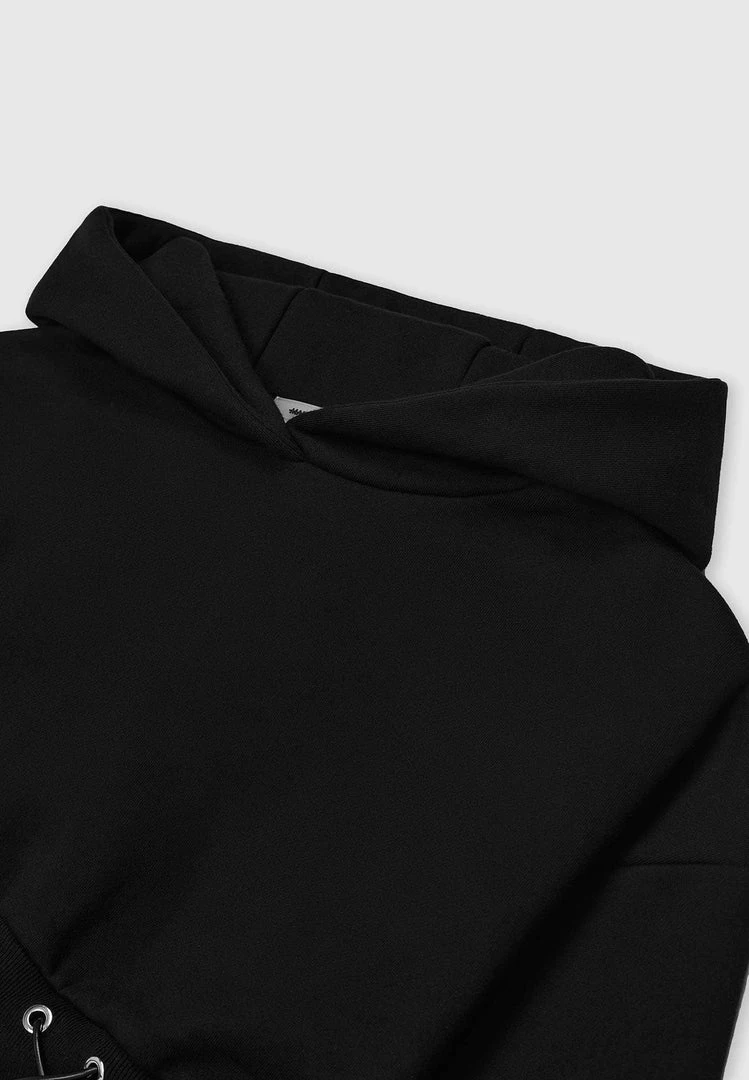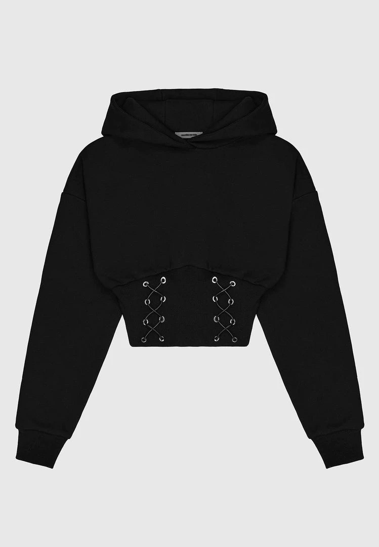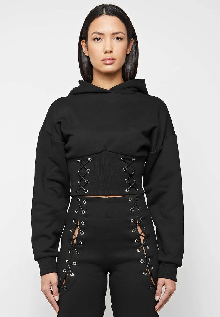 Black Lace Up Cropped Hoodie