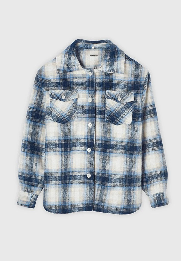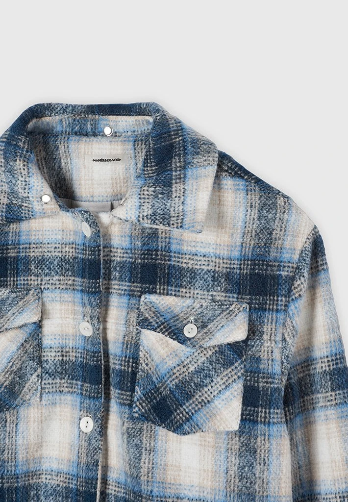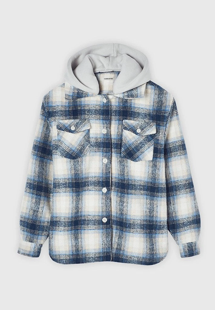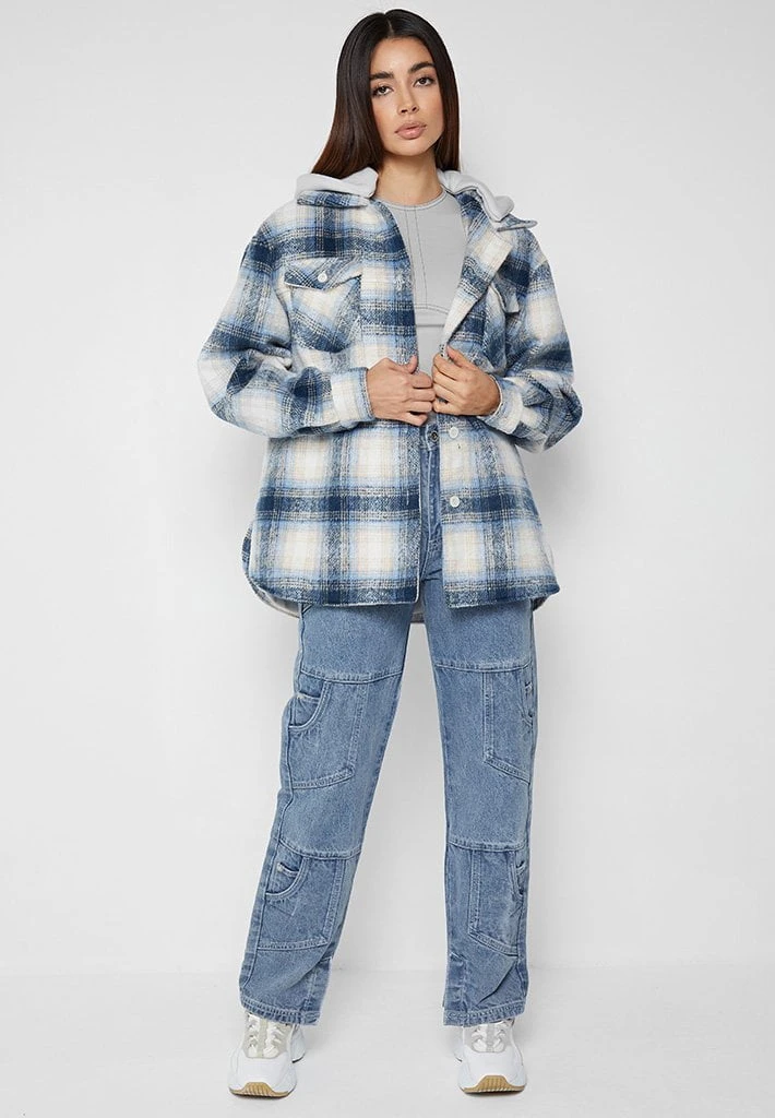 Blue Checked Shacket with Jersey Hood