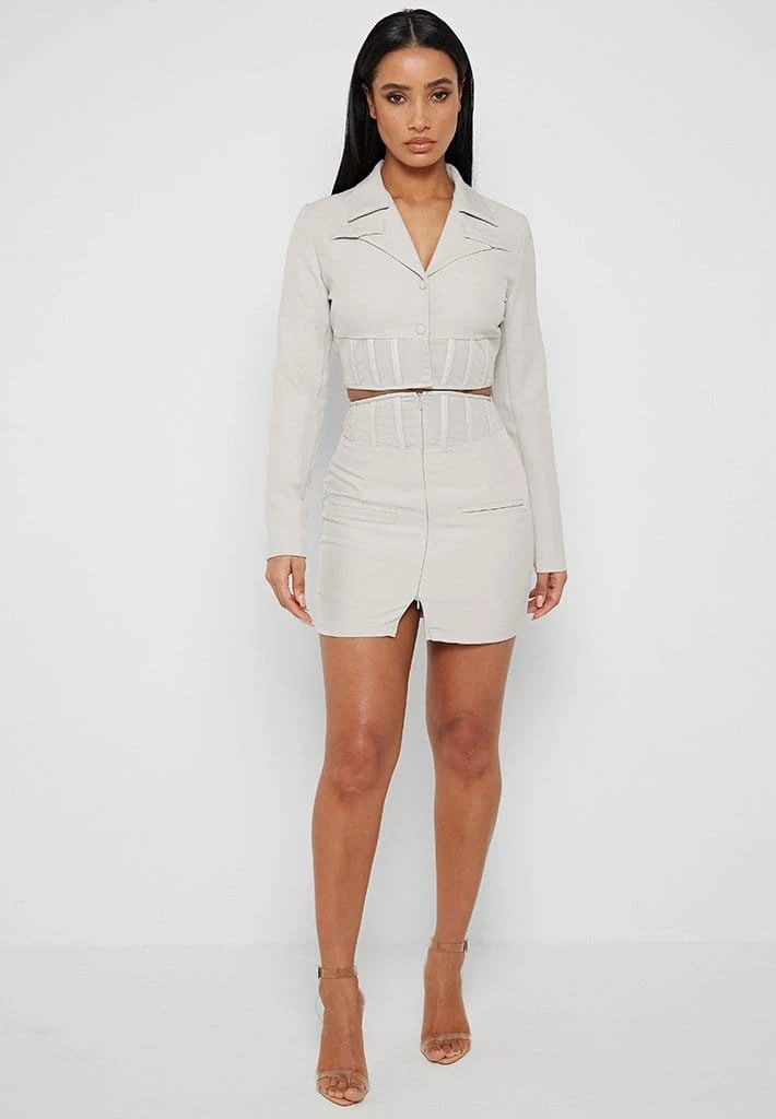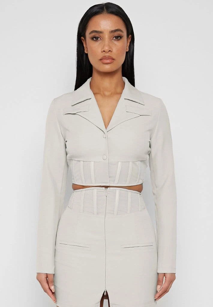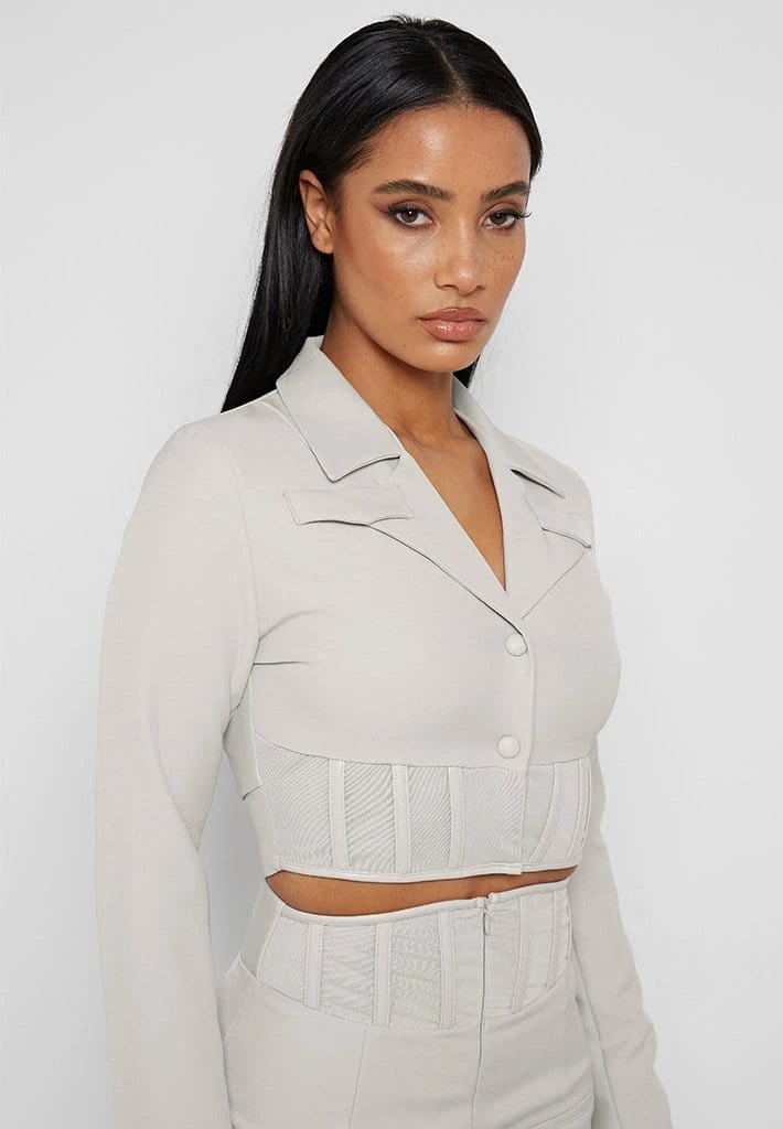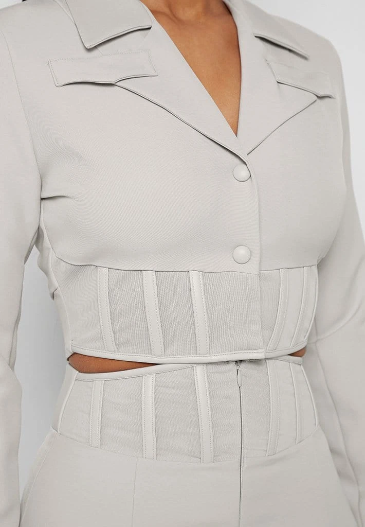 Stone Cropped Corset Waist Blazer