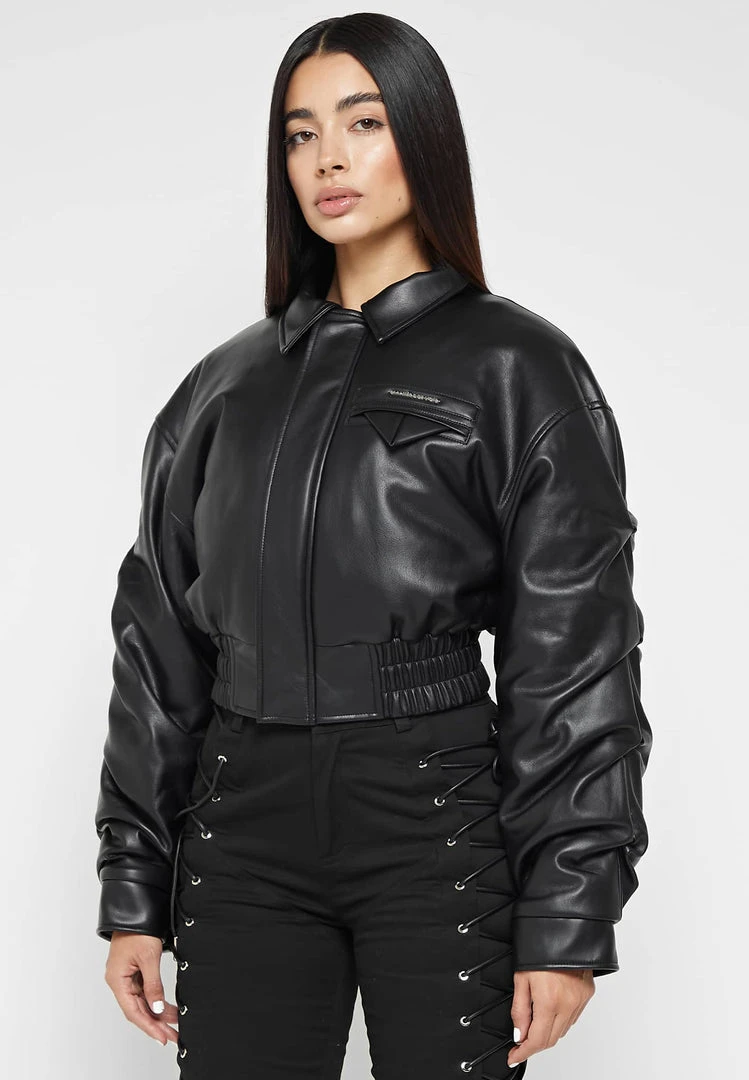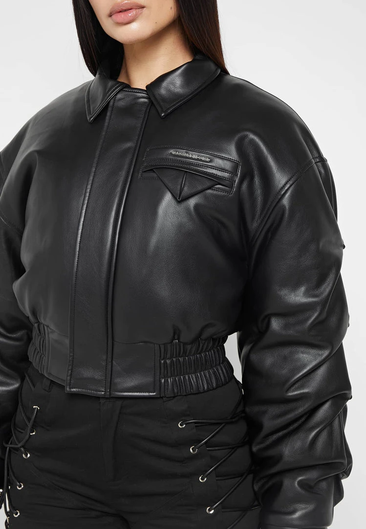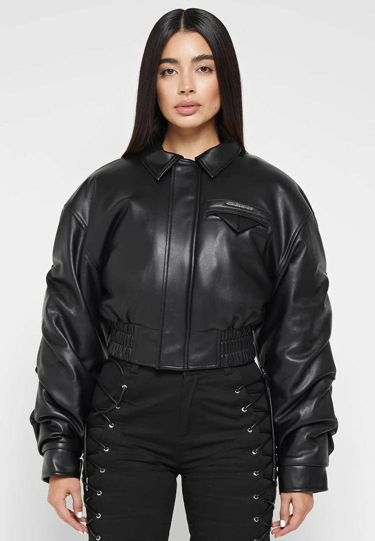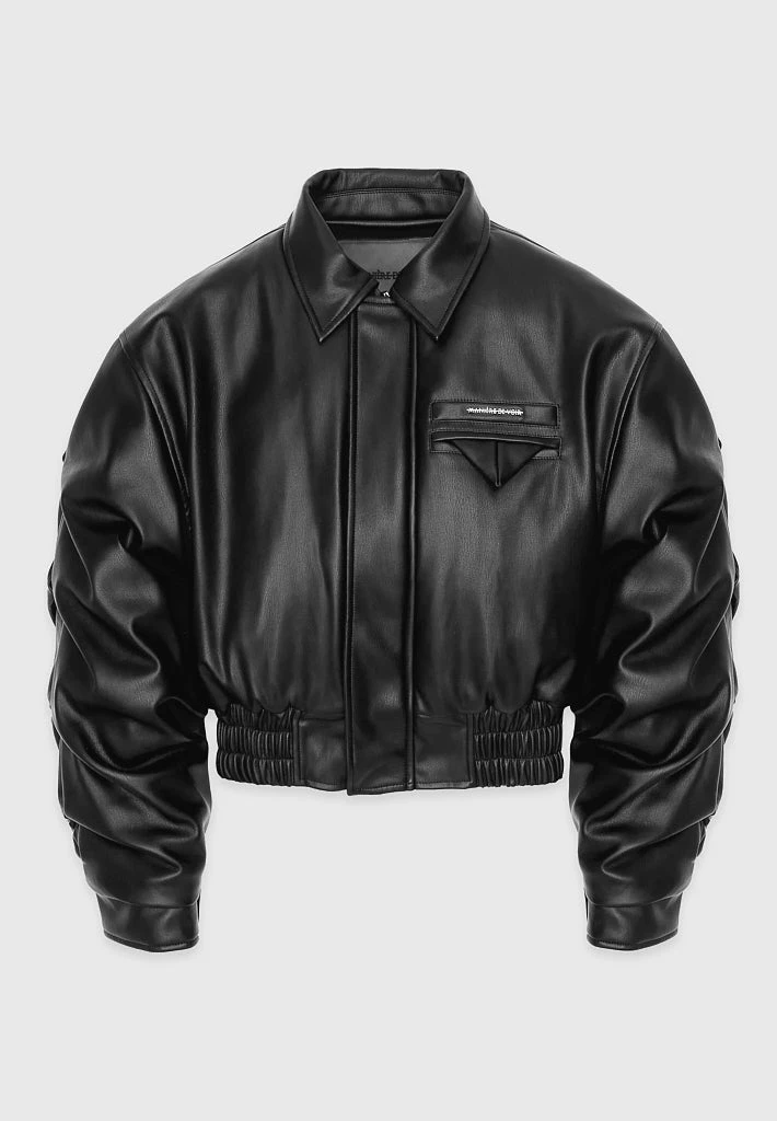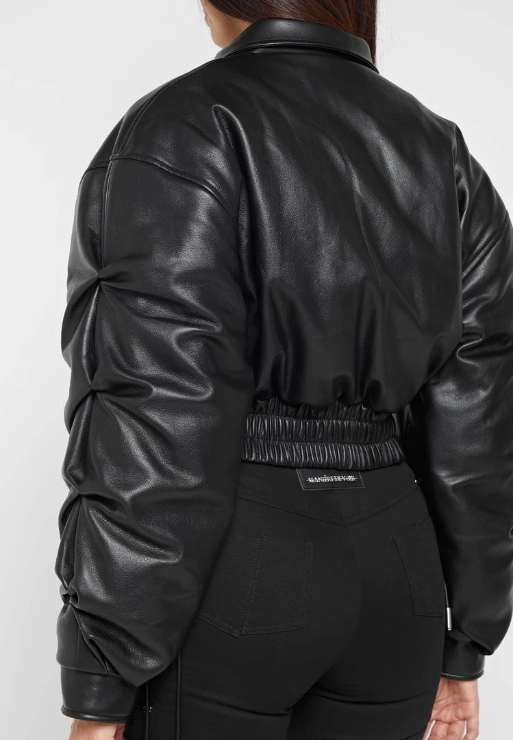 Black Tacked Vegan Leather Bomber Jacket