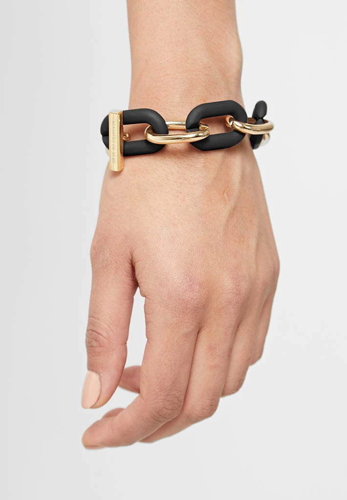 For jewellery that makes a statement, the Matte & Gold Bracelet ticks all boxes. With interlocked matte resin and gold chains, this clean and classic design will suit outfits in both the office and on a night out. We recommend pairing this with the matching Matte & Gold Bracelet & Matte & Gold Earrings.