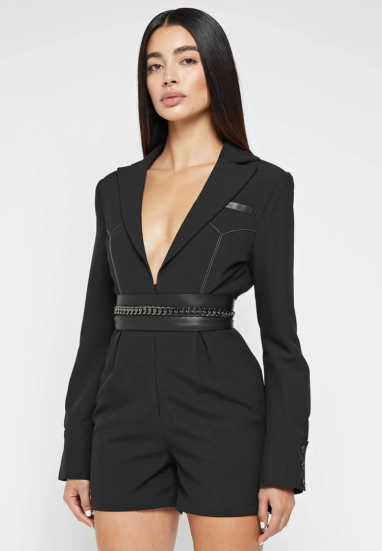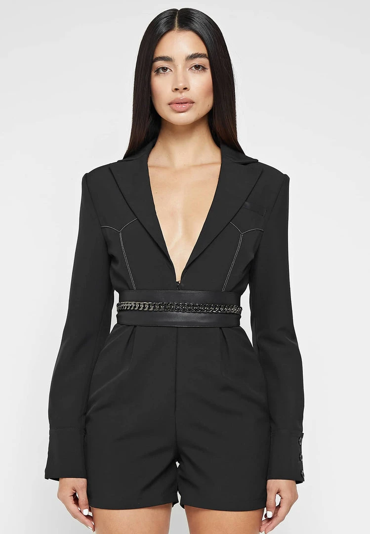 This playsuit features a removable Vegan Leather belt that can be switched up to suit any style. The dropped neckline makes this playsuit perfect for any going out occasion.