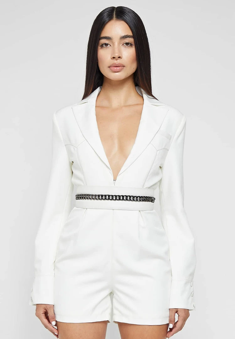 This playsuit features a removable Vegan Leather belt that can be switched up to suit any style. The dropped neckline makes this playsuit perfect for any going out occasion.
