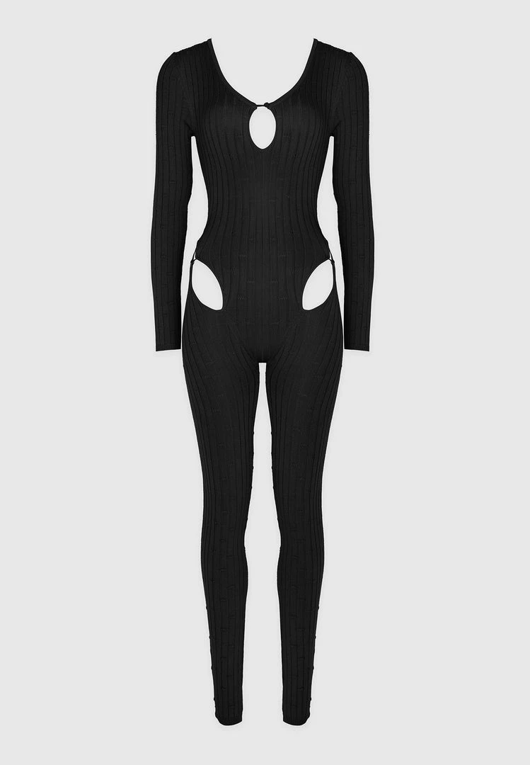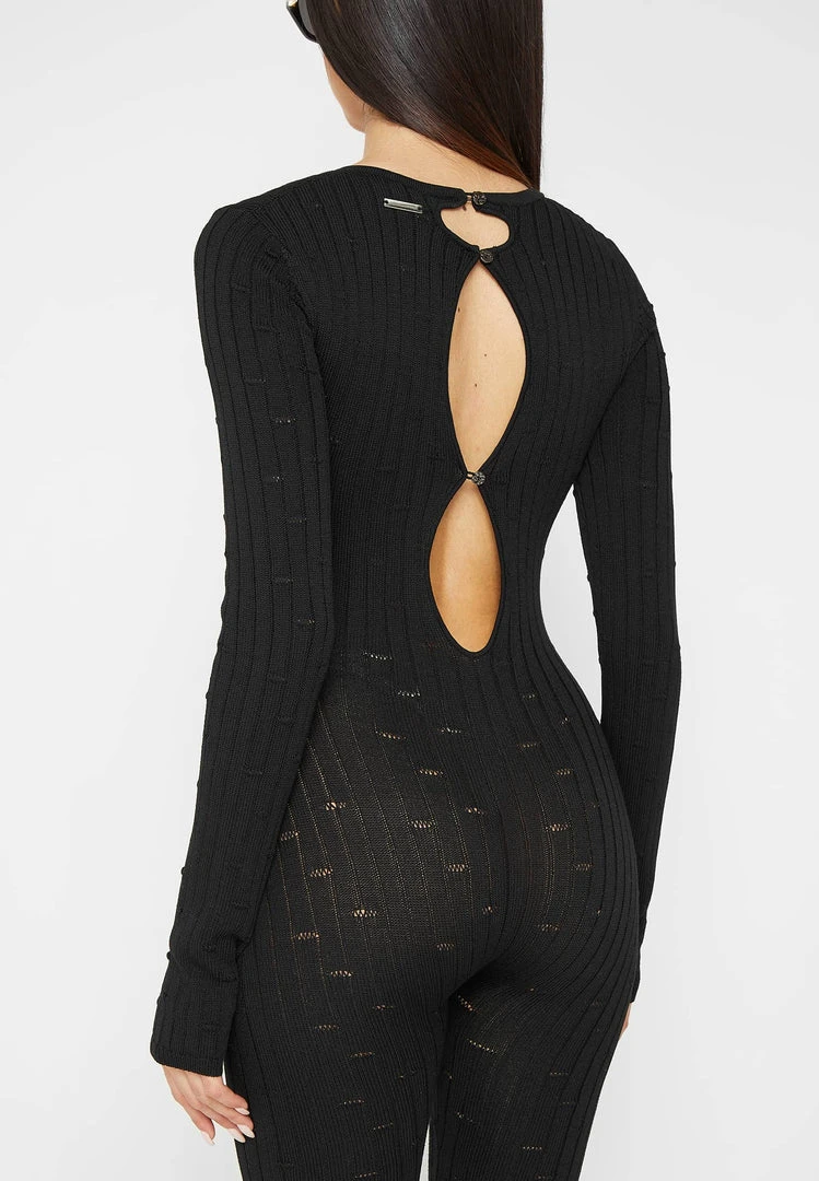 The cut out detailing adds a sexy feature to this jumpsuit while the subtly distressed fabric adds a slight casual feel to the jumpsuit making it perfect for day to night occasions.