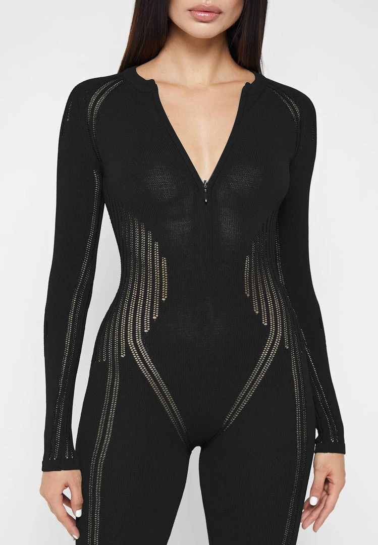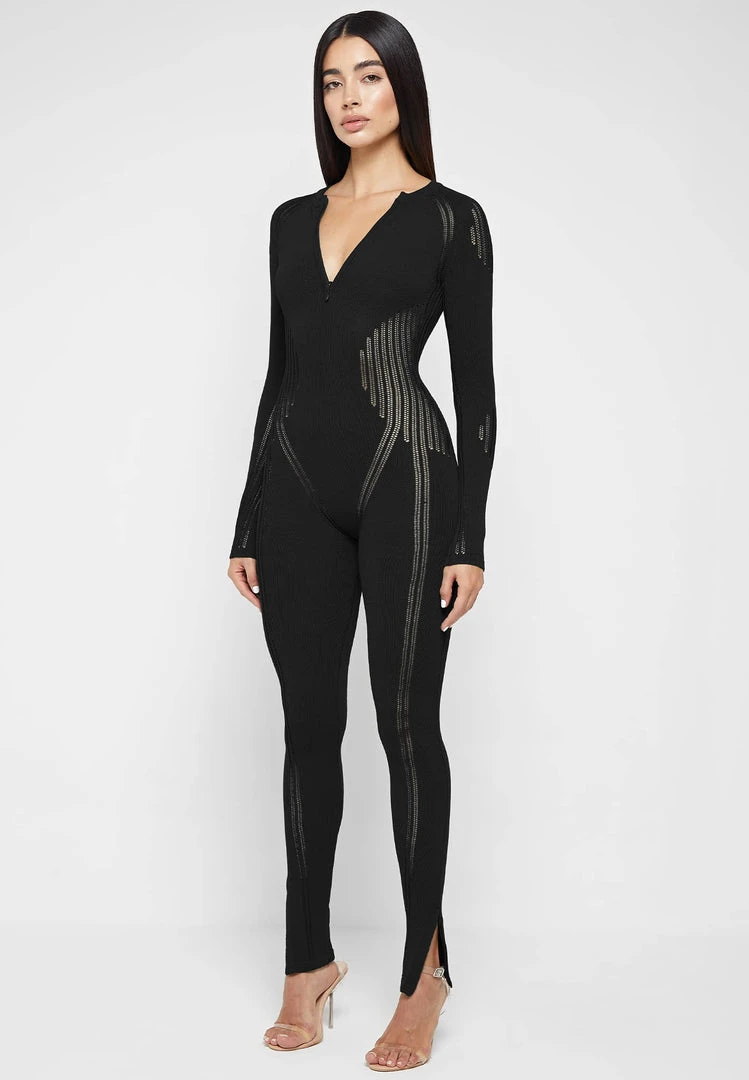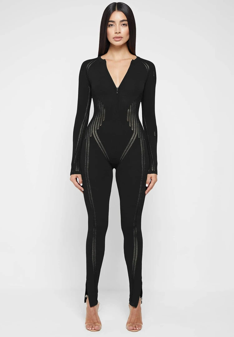 In our classic stretch yarn fabric, this jumpsuit offers careful contouring for a flattering silhouette perfect for those day to night occasions.