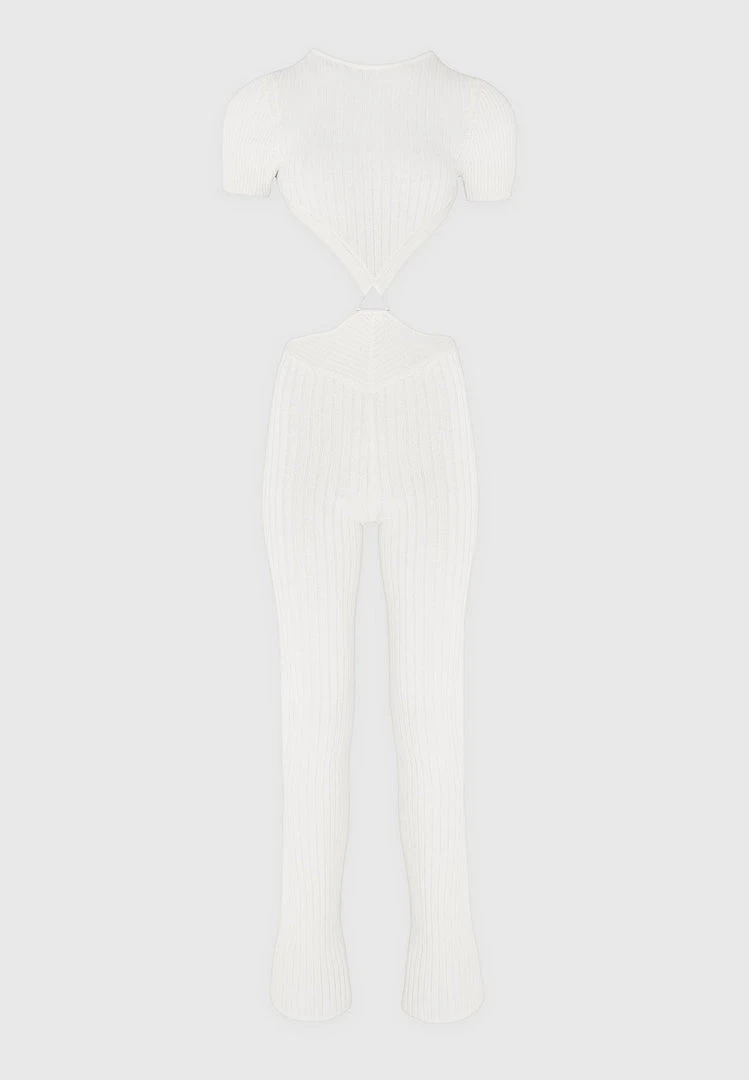Off White Knitted Backless Jumpsuit