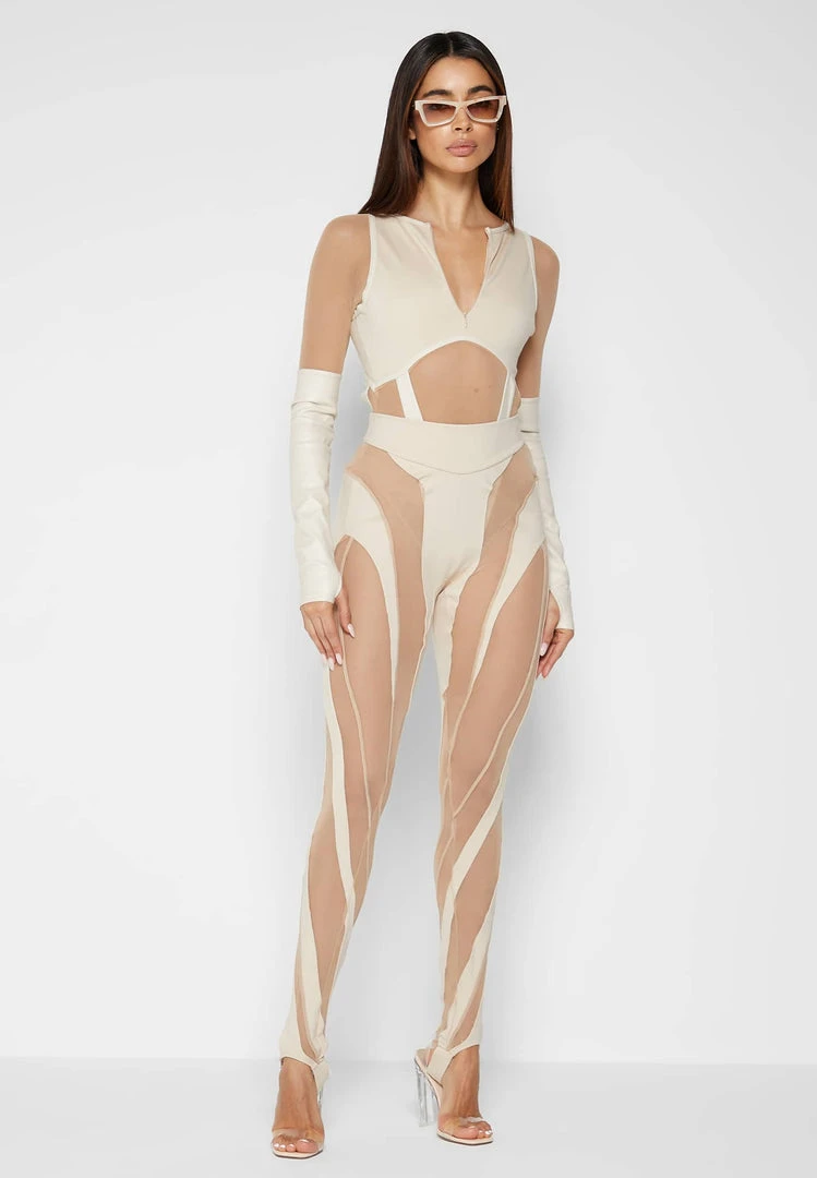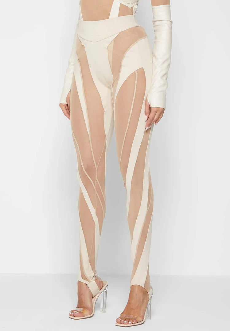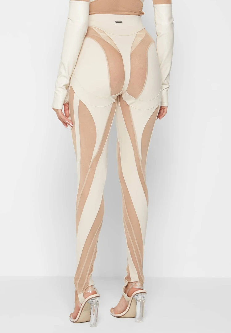 Beige Spiral Contour Mesh Leggings