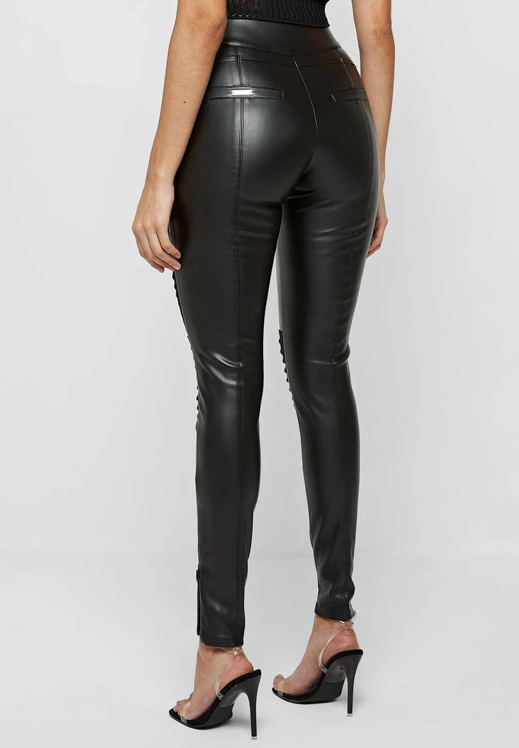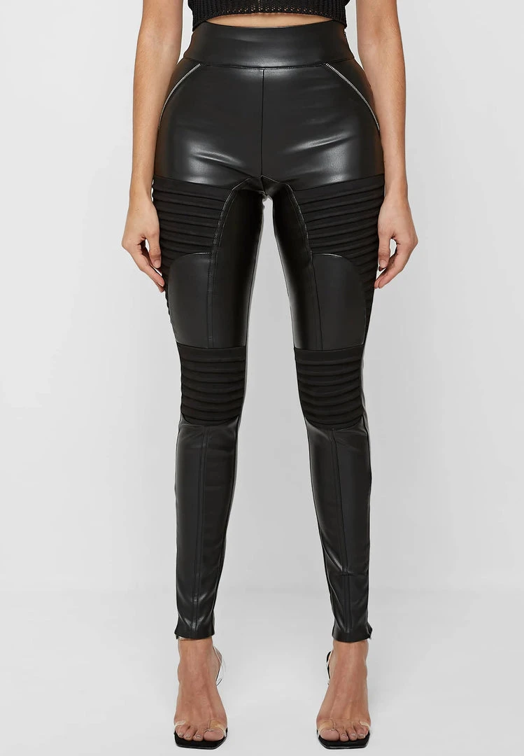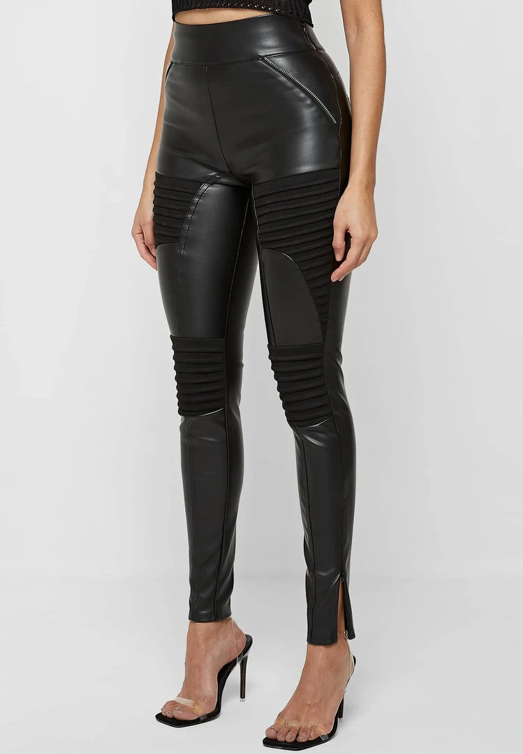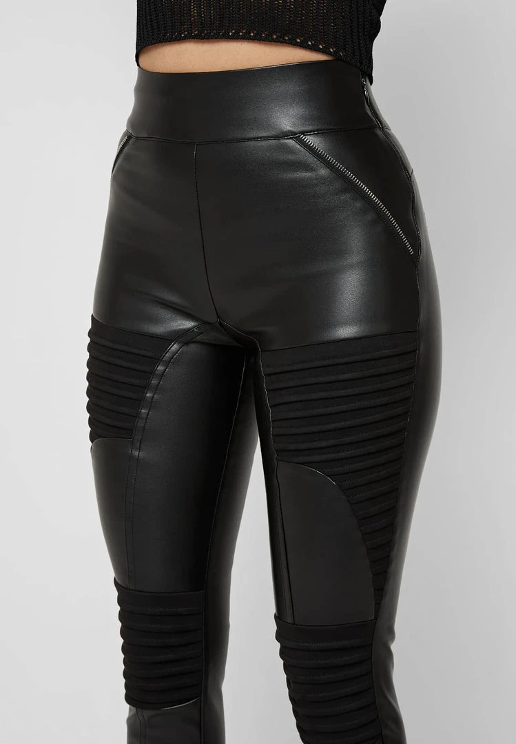Black Vegan Leather & Suede Ribbed Legging