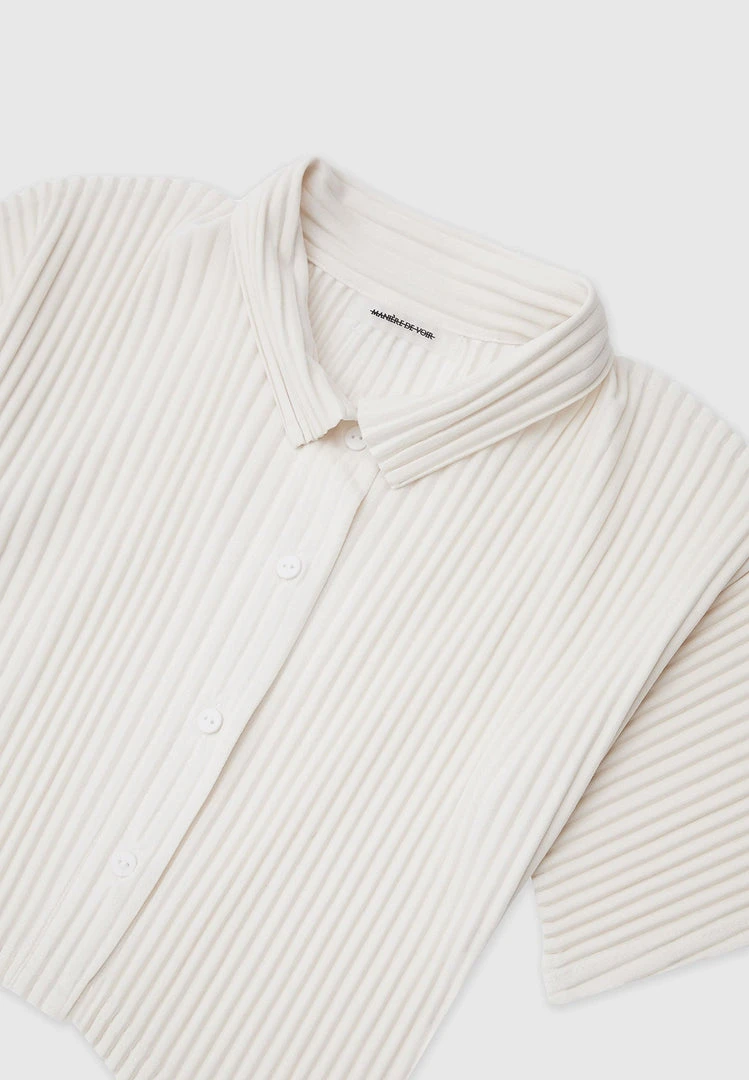 Cream Pleated Curved Hem Shirt