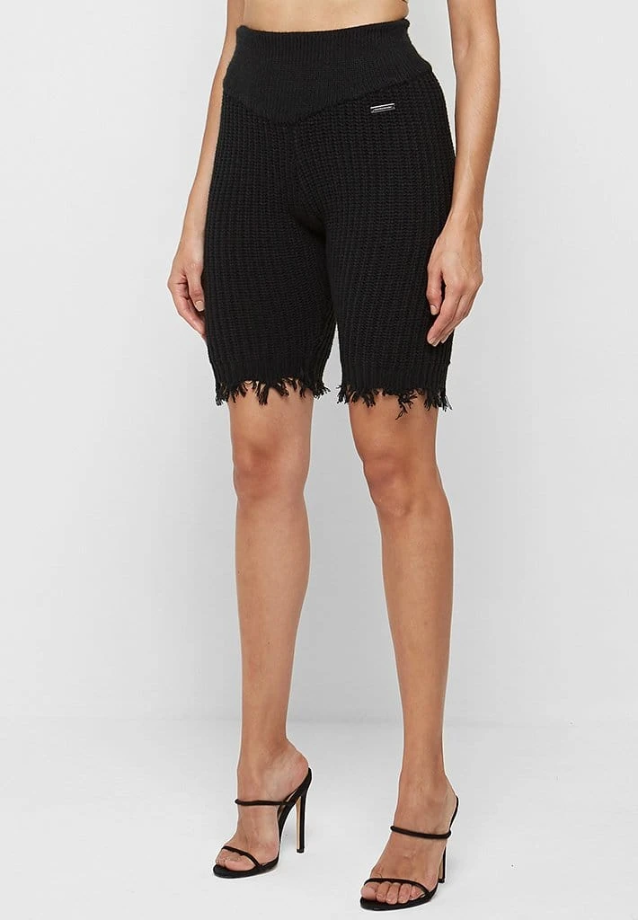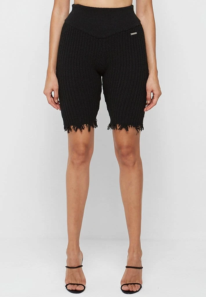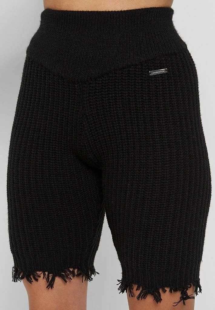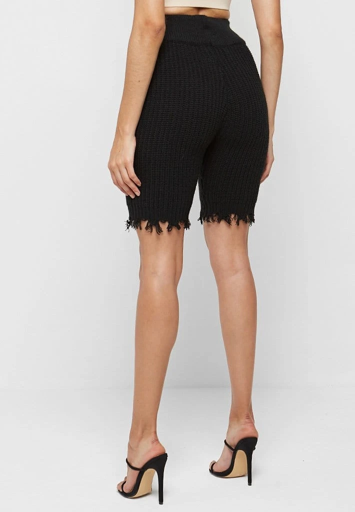 Black Distressed Knitted Cycling Shorts