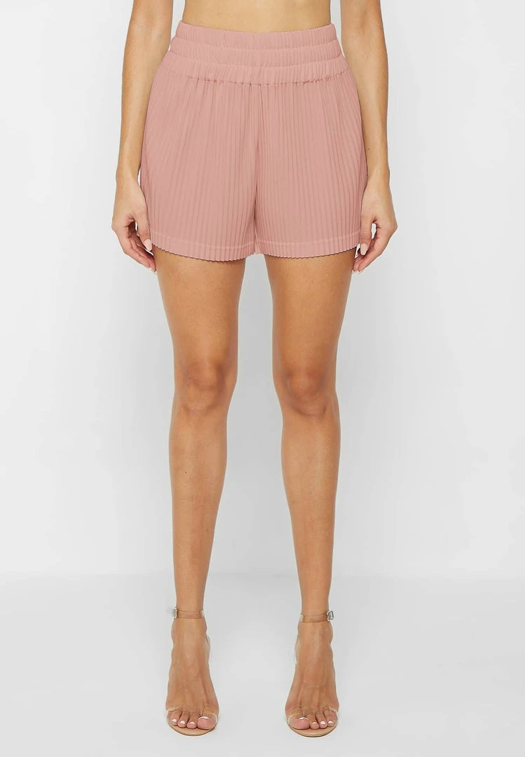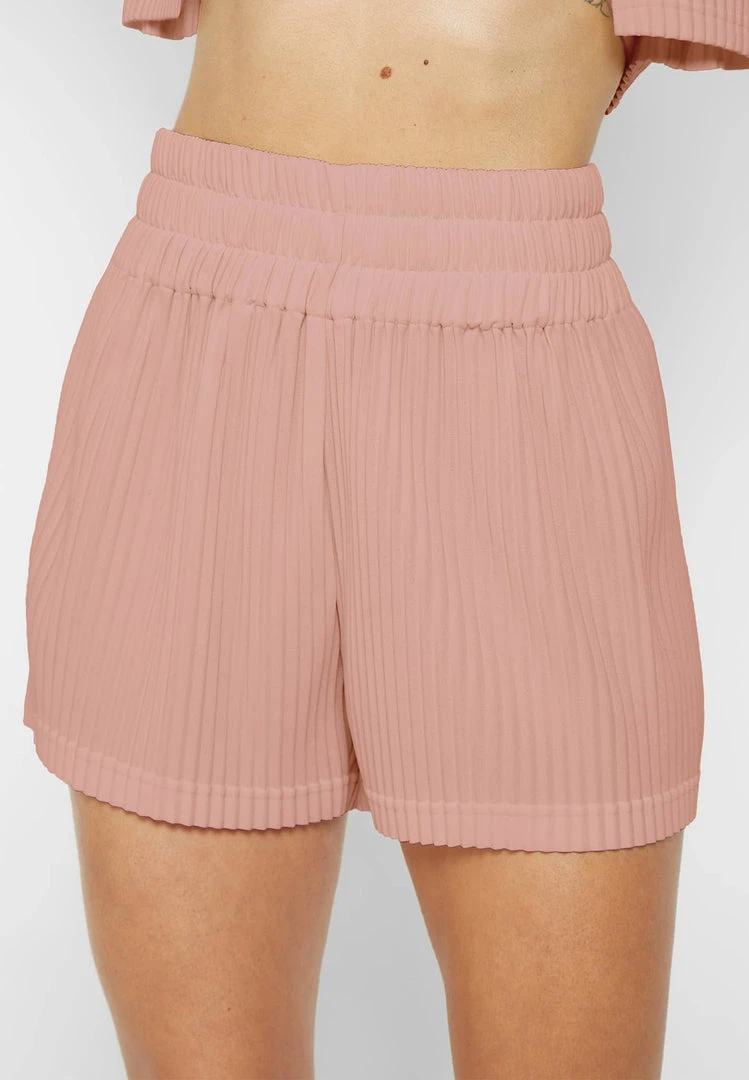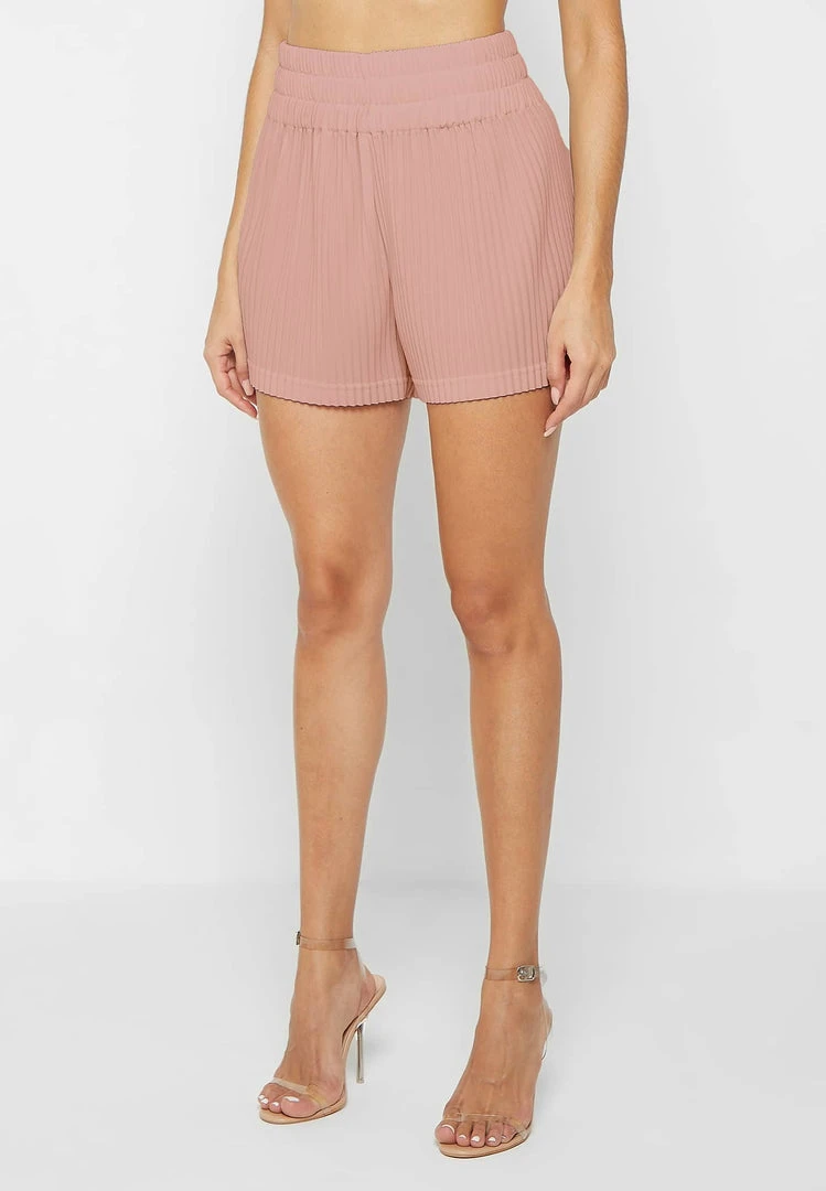 Pink Pleated High Waisted Shorts